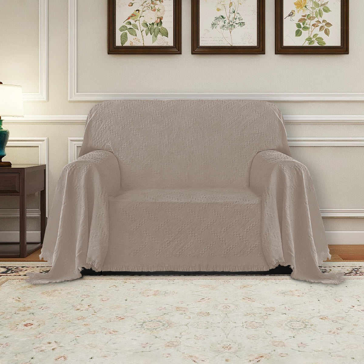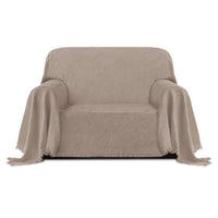 Purefit Geometric Jacquard Throw Sofa Cover - Textured Soft Washable Decorative Couch Covers For 3 Cushion Couch, Throw Cover With Tassels Furniture Protector For Pets, Kids (Small, Camel)