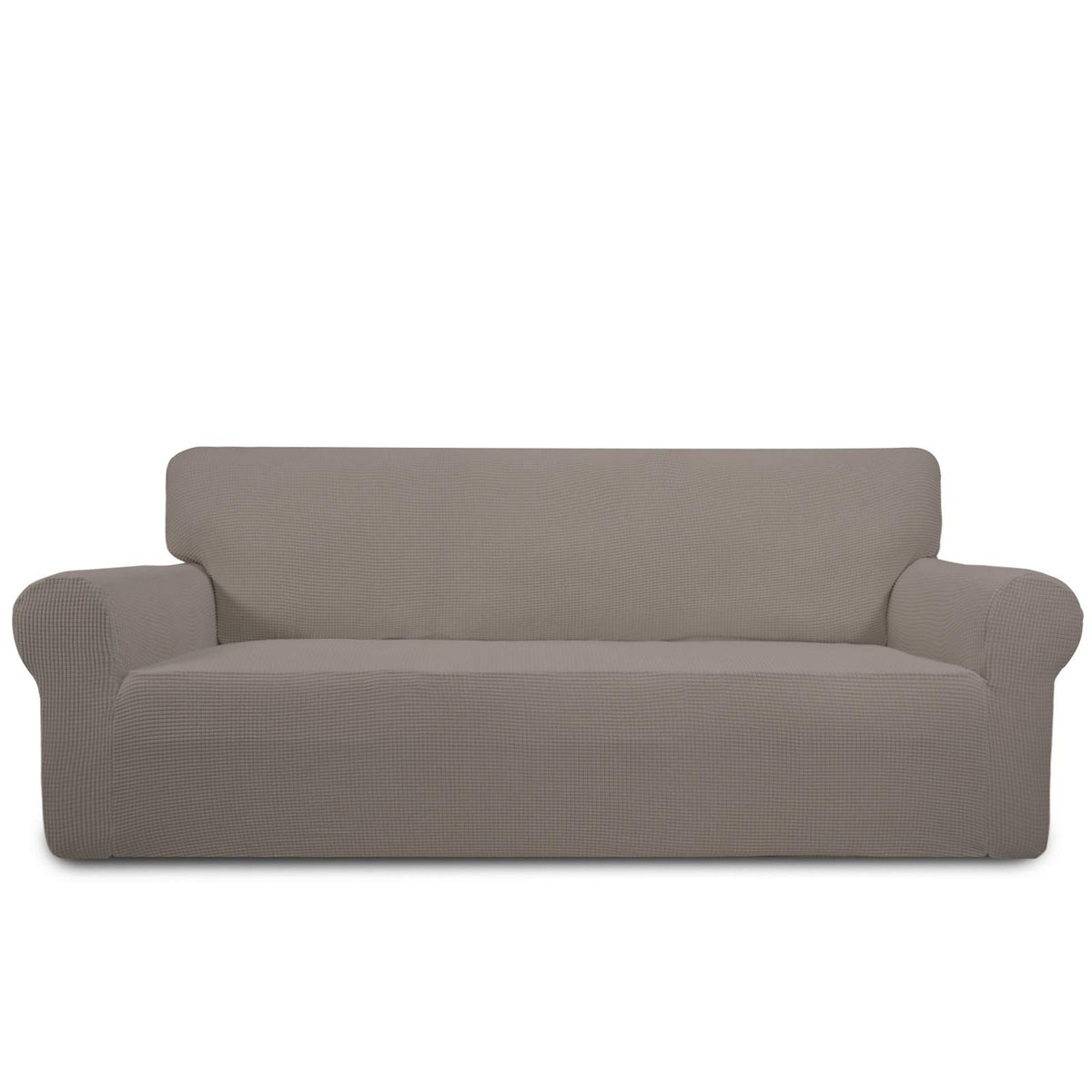 Purefit Stretch Sofa Slipcover – Spandex Jacquard Non Slip Soft Couch Sofa Cover, Washable Furniture Protector With Non Skid Foam And Elastic Bottom For Kids (Sofa, Taupe)