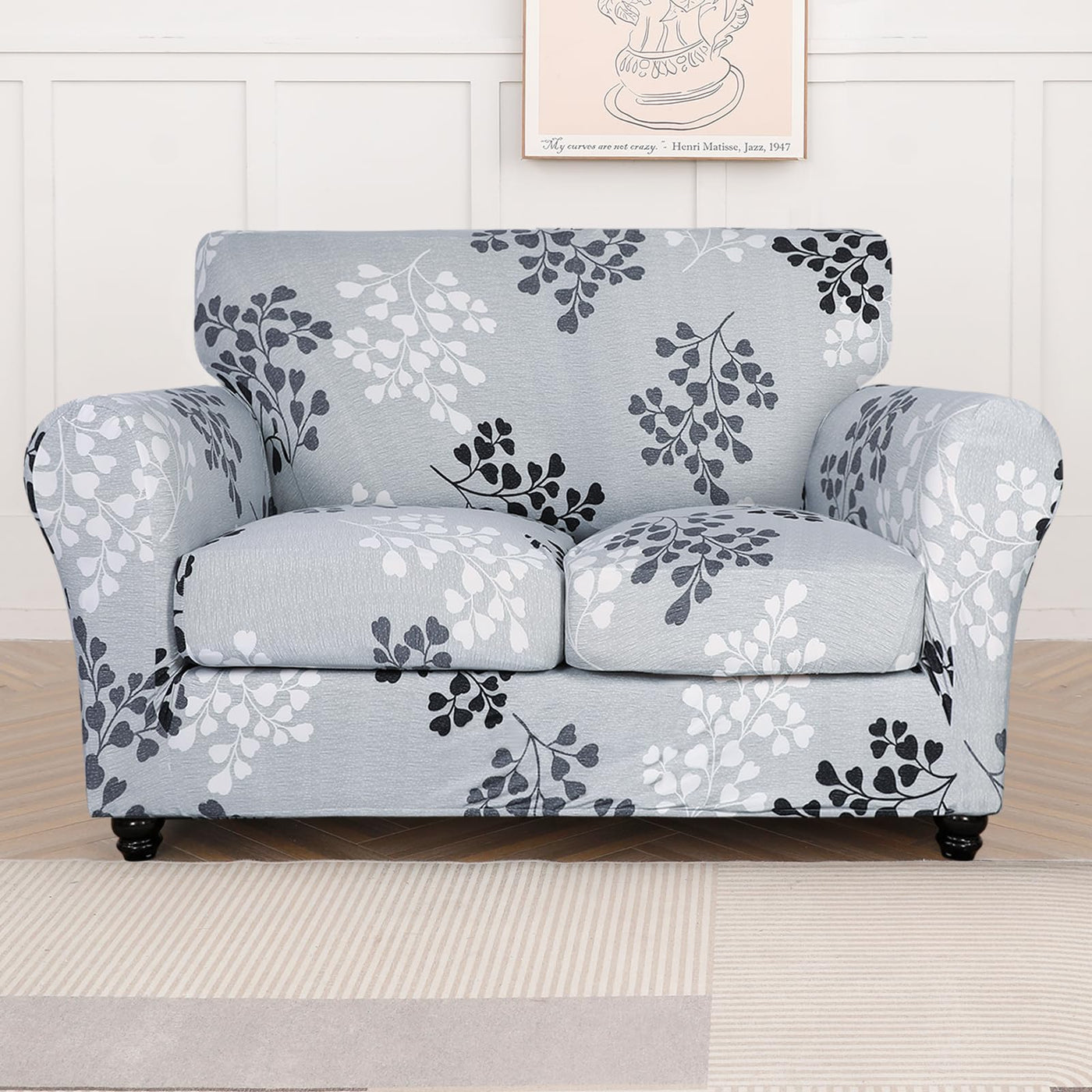 SearchI Stretch Sofa Cover Printed Couch Cover, Floral Pattern 3 Pieces Loveseat Slipcover with 2 Separate Cushion Cover, Washable Furniture Protector for Living Room(Loveseat, Leaf Pattern)