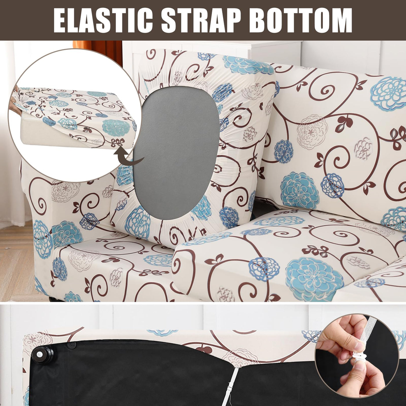 SearchI Stretch Sofa Cover Printed Couch Cover, Floral Pattern 4 Pieces Sofa Slipcover with 3 Separate Cushion Cover, Washable Furniture Protector for Living Room(Sofa, Ball Flower)
