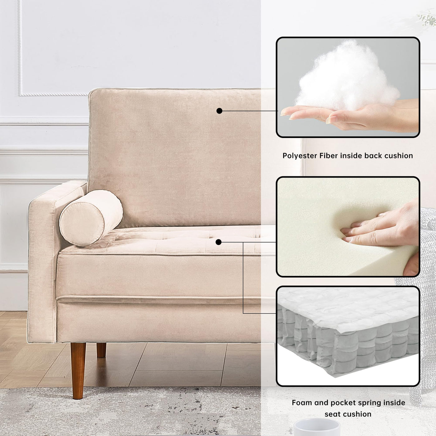 FEATHERLY SOFT VELVET FABRIC | COMFORTABLE SEAT CUSHIONS - with reliable support | TWO MATCHING BOLSTER PILLOWS INCLUDED | COMPACT DESIGN - suitable for small spaces such as living rooms, bedrooms, and apartments | EASY ASSEMBLY