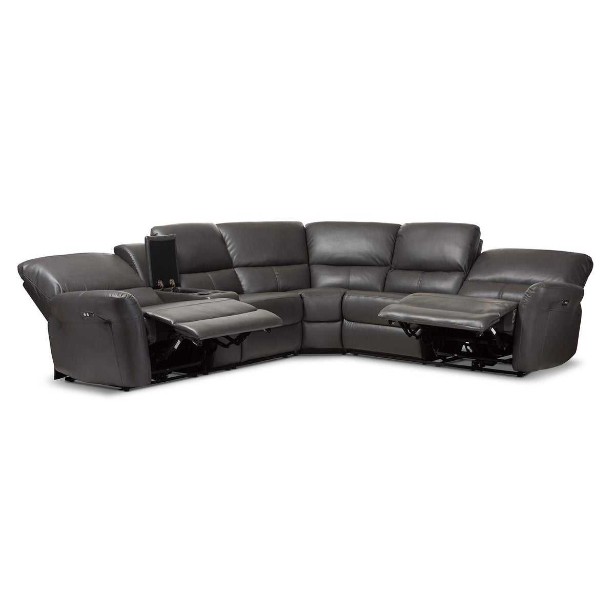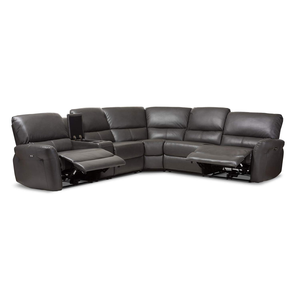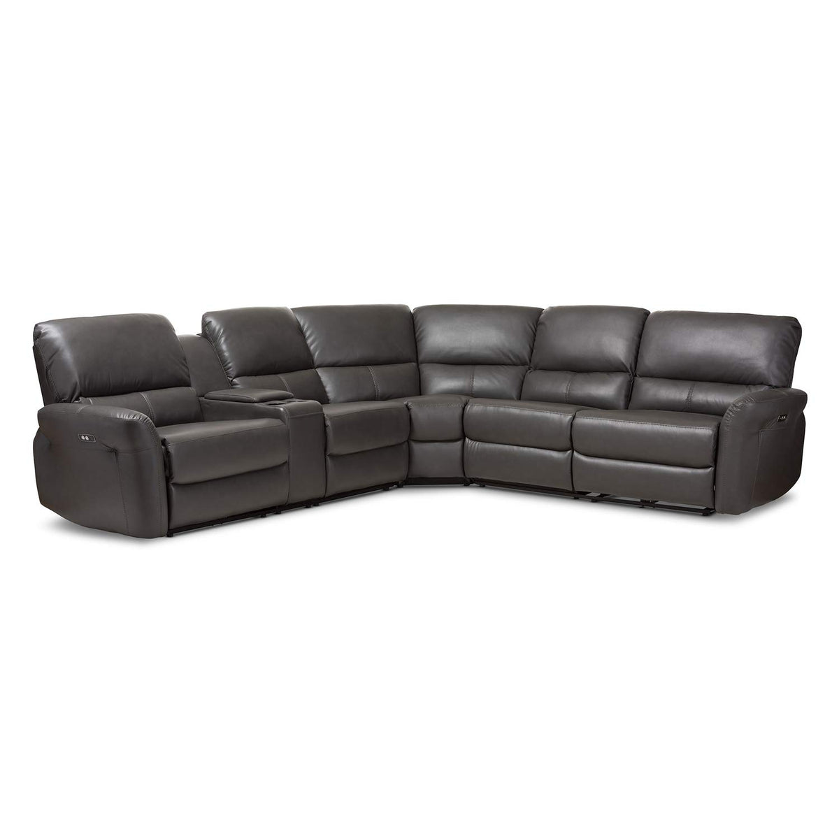 Baxton Studio Amaris 5 Piece Leather Reclining Sectional in Gray