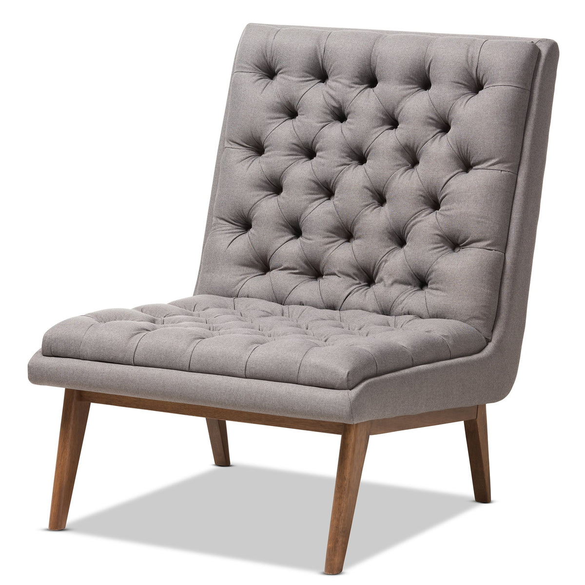 One Look At The Annetha Lounge Chair Is All You Need To See That This Stylish Piece Is Meant For Comfort. This Chair'S Clean, Square Design And Low-Profile Are Mid-Century Modern-Inspired. The Annetha Is Built To Last With A Solid Rubberwood Frame And Angled Walnut-Finished Legs. The Seat And Chairback Are Foam-Padded And Upholstered In Grey Fabric For Optimum Comfort. The Annetha Features A Generously Sized Seating Area With A Reclined Back, Perfect For Lounging And Relaxing. The Sumptuous Button-Tufting Makes This Lounge Chair A Smart Addition To Your Living Room, Waiting And Reception Areas, Or Any Shared Space. Made In Malaysia, The Annetha Requires Assembly.Features Mid-Century Modern Lounge Chairgrey Fabric Upholsterysolid Rubberwood, Walnut-Finished Legsbutton-Tuftedfoam Padded For Comfortassembly Requiredmade In Malaysiadimensions: 36.22" High X 28.35" Wide X 33.07" Deep; Seating Dimensions: 15.55" High (From Floor) X 26.57" Wide X 20.87" Deep; Back: 20.67" High; Legs: 8.46" Highset Includes: One (1) Living Room Chairstyle: Mid-Centurymaterial: Fabric "Polyester 100%"/Rubber Wood/Foamcolor: Grey