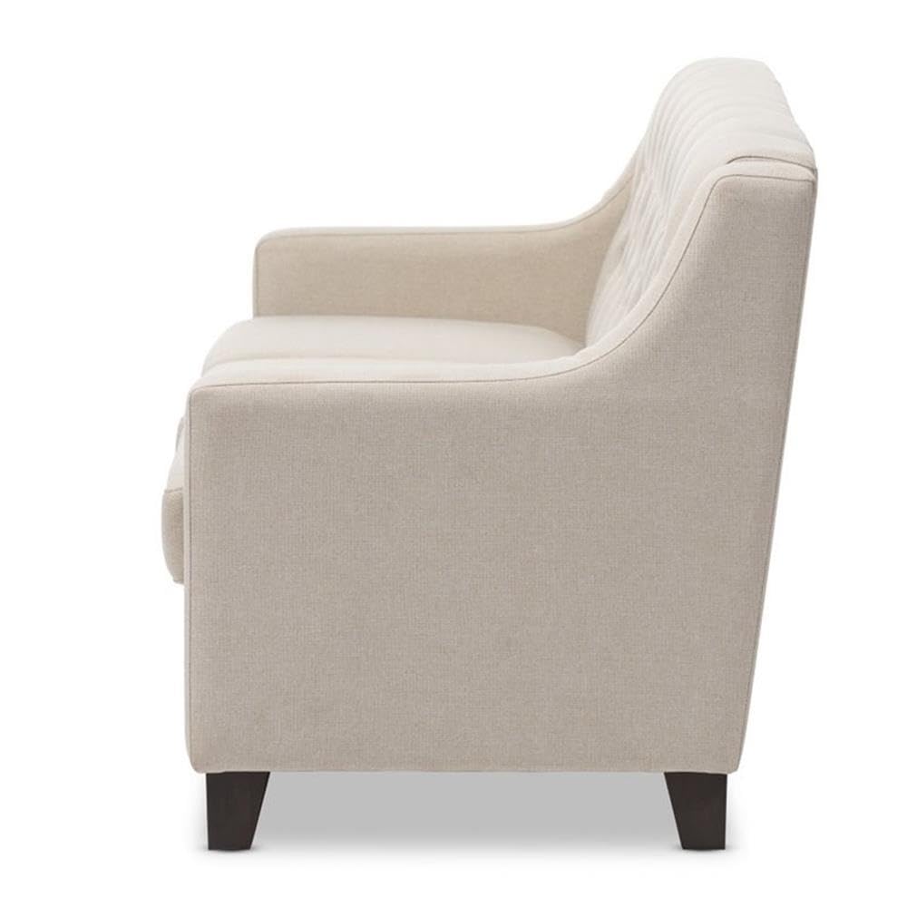 Baxton Studio Arcadia Modern and Contemporary Light Beige Fabric Upholstered Button-Tufted Living Room 3-Seater Sofa