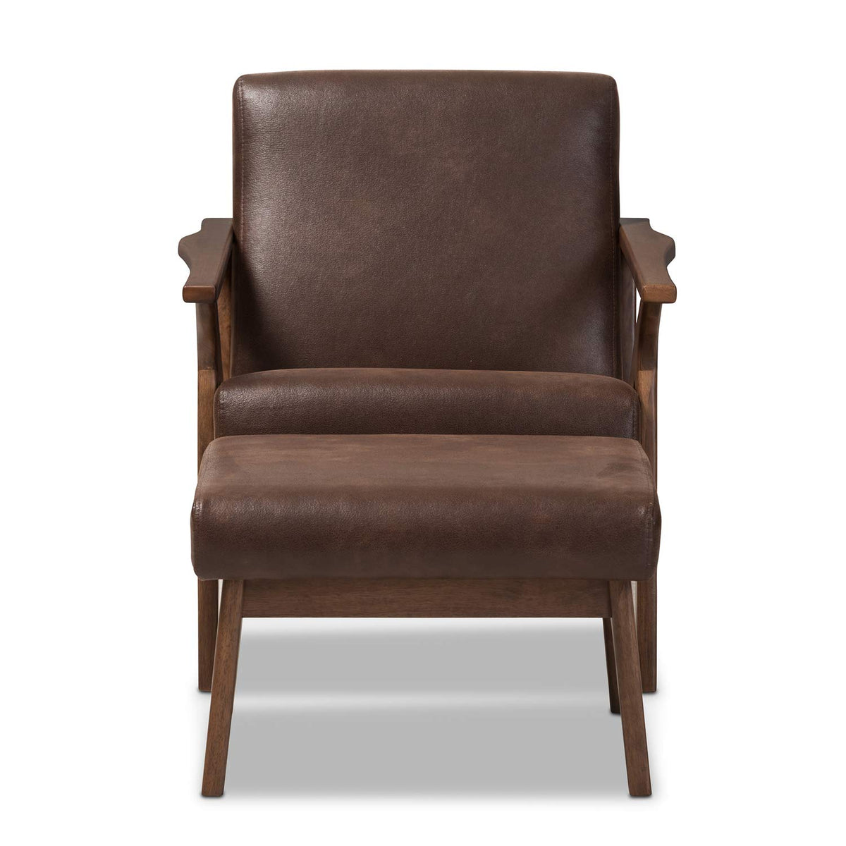 Baxton Studio Bianca Mid-Century Modern Walnut Wood Dark Brown Distressed Faux Leather Lounge Chair And Ottoman Set/Mid-Century/Dark Brown/Walnut Brown/Faux Leather/Rubber Wood