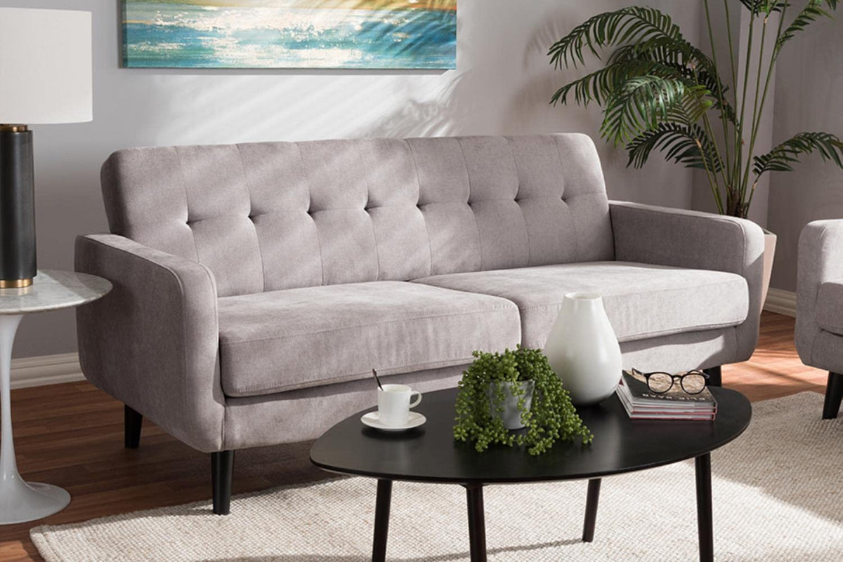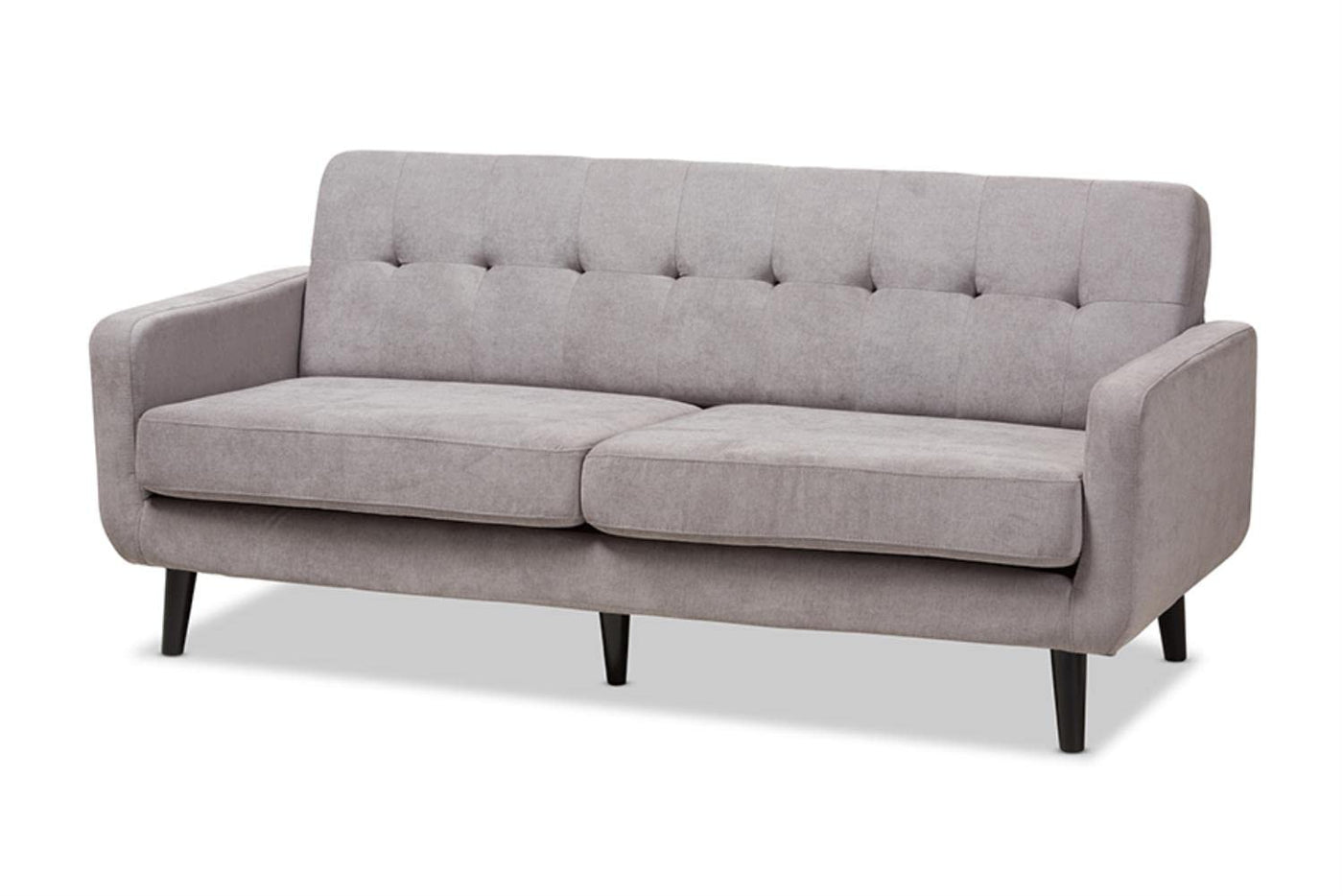Baxton Studio Carina Mid-Century Modern Light Grey Fabric Upholstered Sofa Grey//Mid-Century/Fabric Polyester 100%"/Pine Wood/Foam