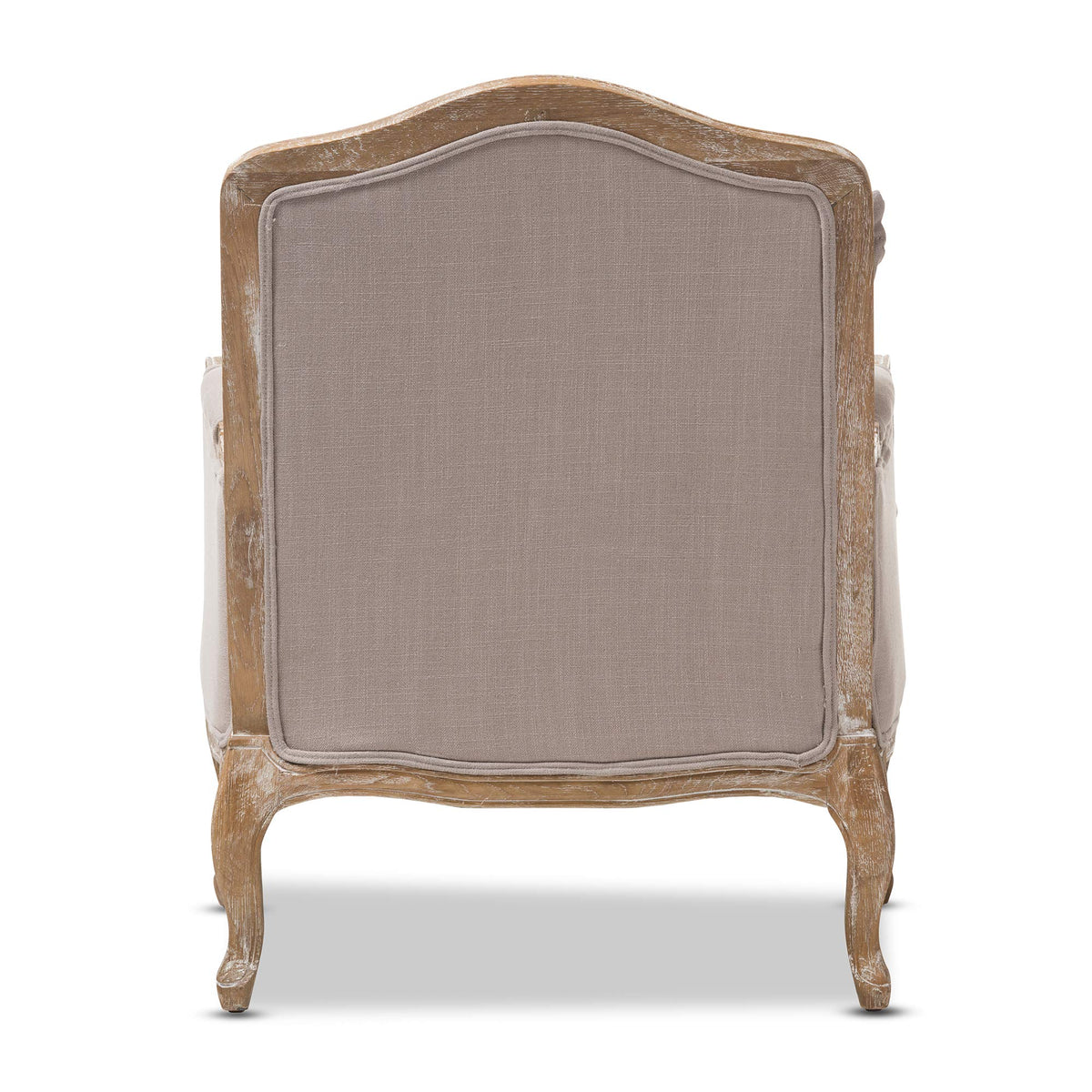 The Constanza French Living Room Chair will show you why French style has worked its way into the modern home. The distressed look of the antiqued finish exposed rubberwood frame is surprisingly versatile, fitting with like-minded traditional French furnishings as well as sleek modern and industrial styles. Similarly versatile is the neutral gray-beige linen upholstery, encasing comfy foam cushions. We recommend exclusively spot cleaning. The Constanza Designer Arm Chair is made in China and requires assembly. Seat dimension: 18.5 inches high x 25 inches wide x 24 inches deep Dimensions: 37.5 inches high x 29.25 inches wide x 29 inches deep