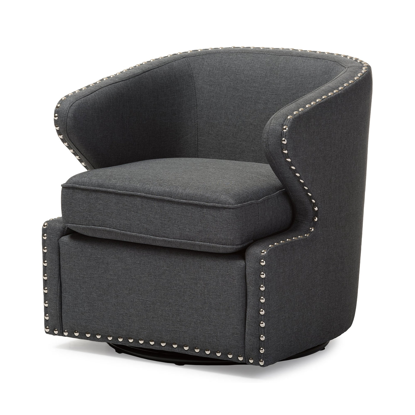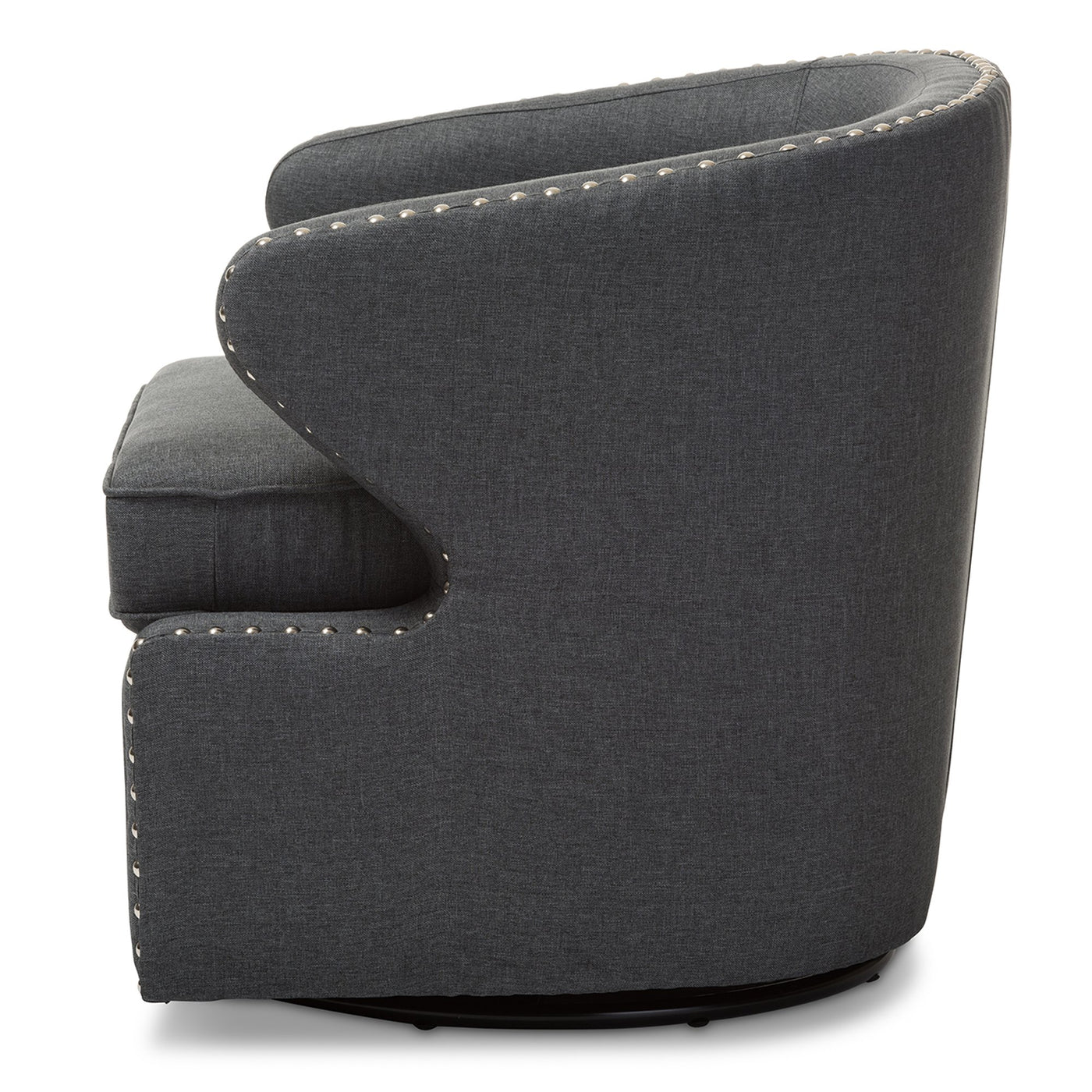 Baxton Studio Finley Mid Century Modern Fabric Upholstered Swivel Armchair, Grey