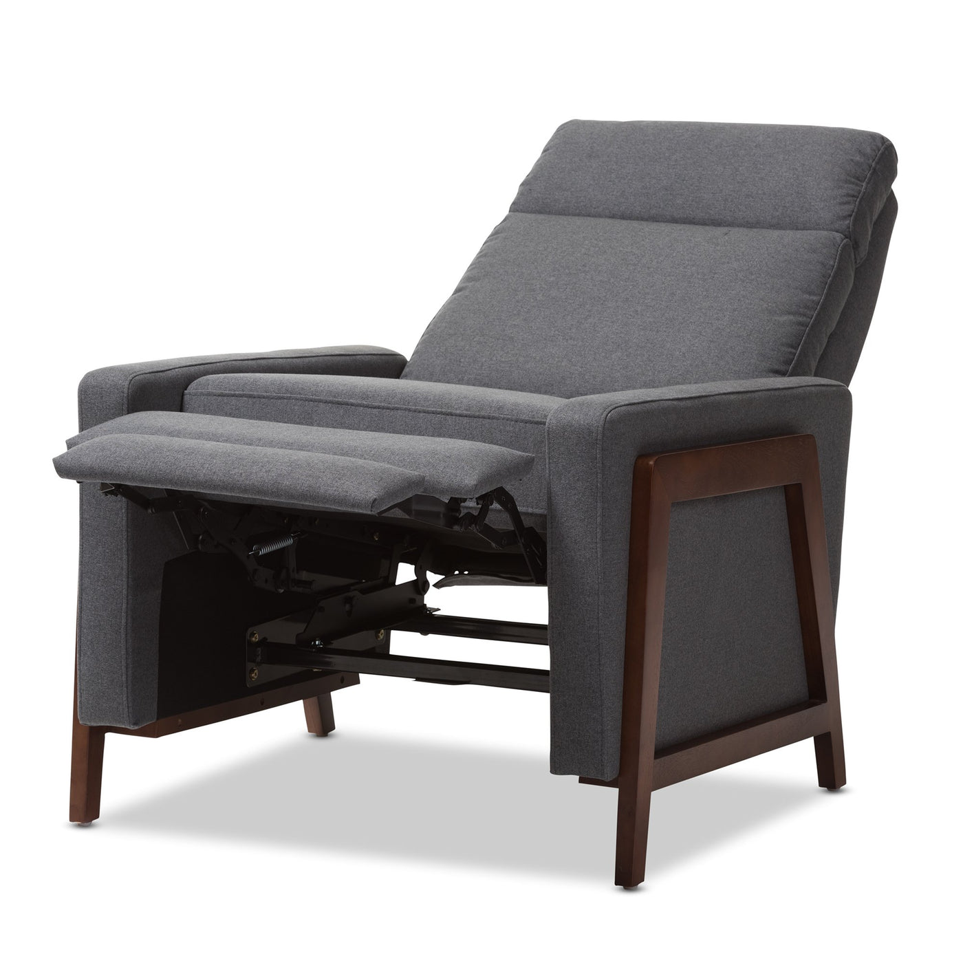 Come Home From A Long Day To The Inviting Halstein Recliner. This Chair Is Constructed With Sturdy Hardwood And Plywood And Upholstered In Gray Fabric For A Lasting, Stylish Experience. The Halstein Is Foam-Padded, Allowing You To Sink In And Enjoy The Comforts Of Home. This Chair Features A Reclining Back, Raising Footrest, And Hidden Steel Push-Back Mechanism To Encourage Hours Of Relaxation. The Smooth, Clean, Minimalist Design Of The Halstein Is Accented With Solid, Walnut-Finished Eucalyptus Legs. Be It In Your Livingroom, Guest Room, Nursery, Or Any Shared Space, This Recliner Will Add The Graceful, Retro-Inspired Look You'Ve Been Searching For. Made In China, The Halstein Requires Assembly.