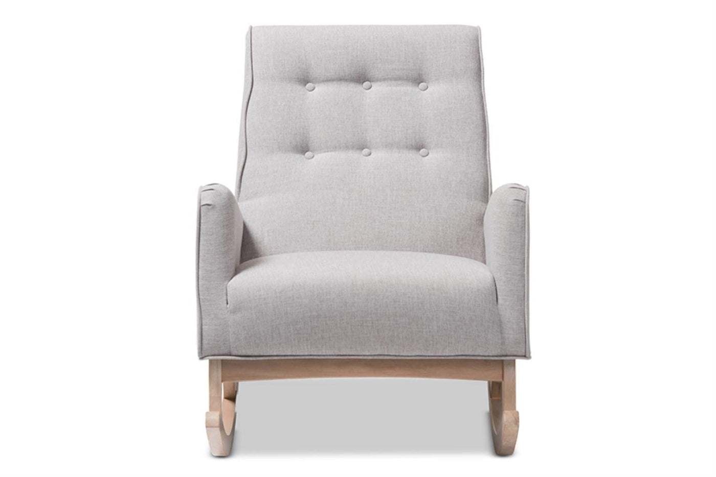 Baxton Studio Marlena Mid-Century Modern Greyish Beige Fabric Upholstered Whitewash Wood Rocking Chair
