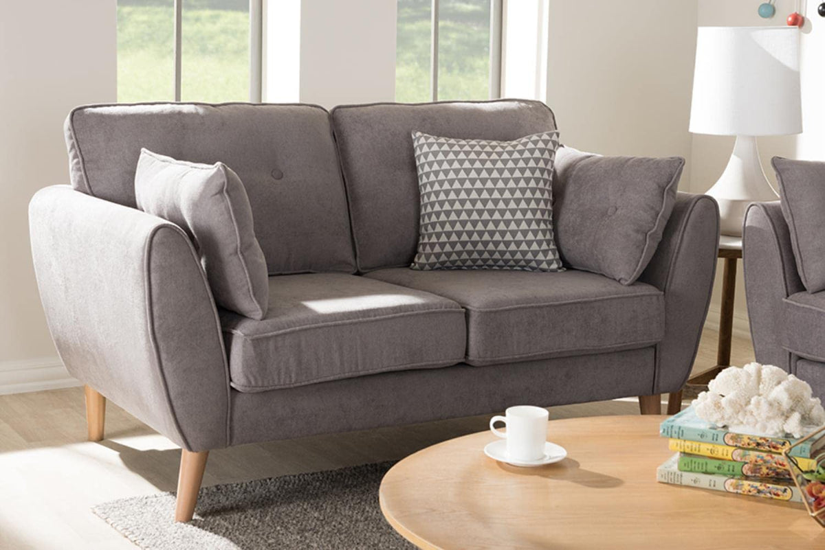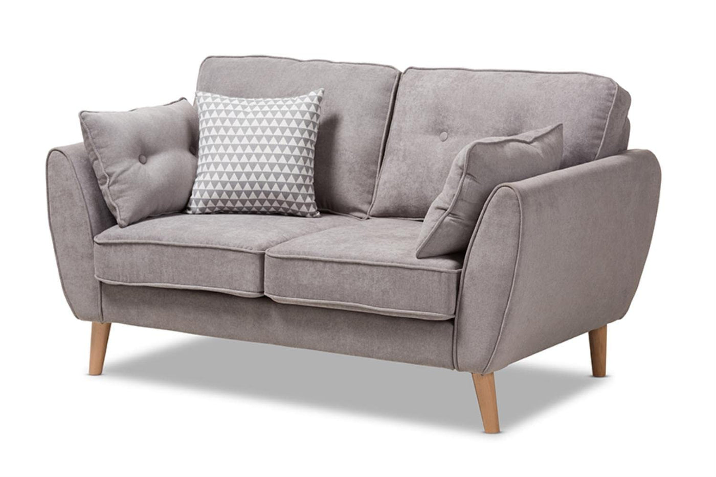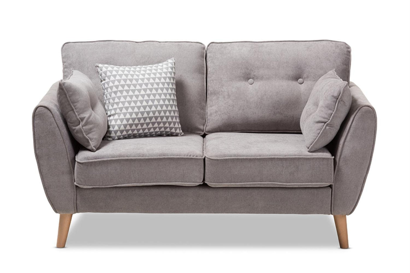 Baxton Studio Miranda Mid-Century Modern Light Grey Fabric Upholstered Loveseat Grey//Mid-Century/Fabric Polyester 100%"/Pine Wood/Foam