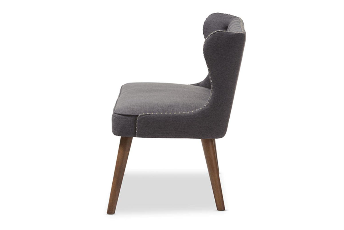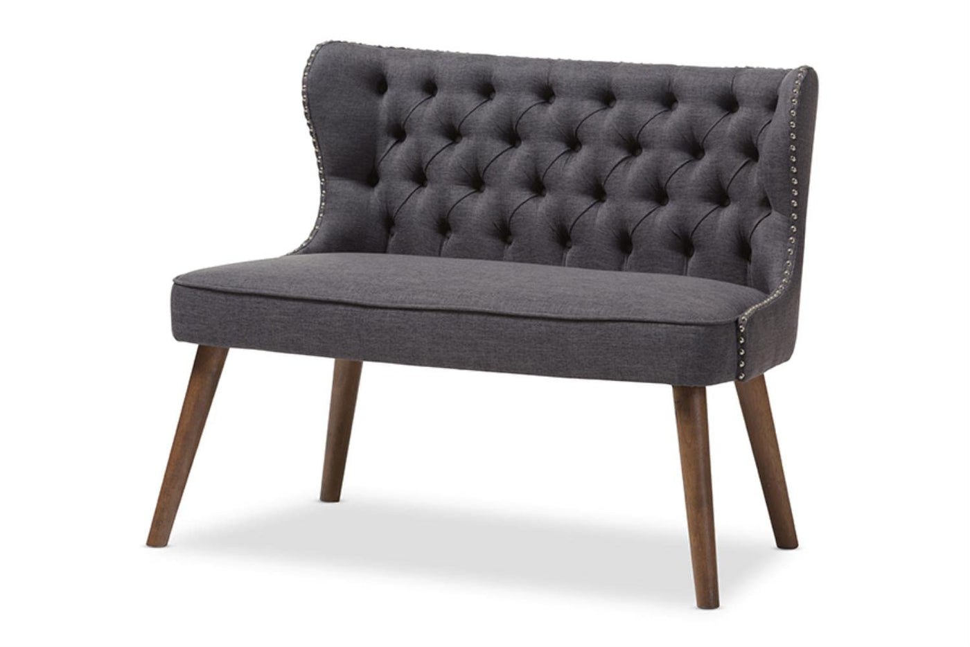Baxton Studio Scarlett Mid-Century Modern Brown Wood and Dark Grey Fabric Upholstered Button-Tufting with Nail Heads Trim 2-Seater Loveseat Settee