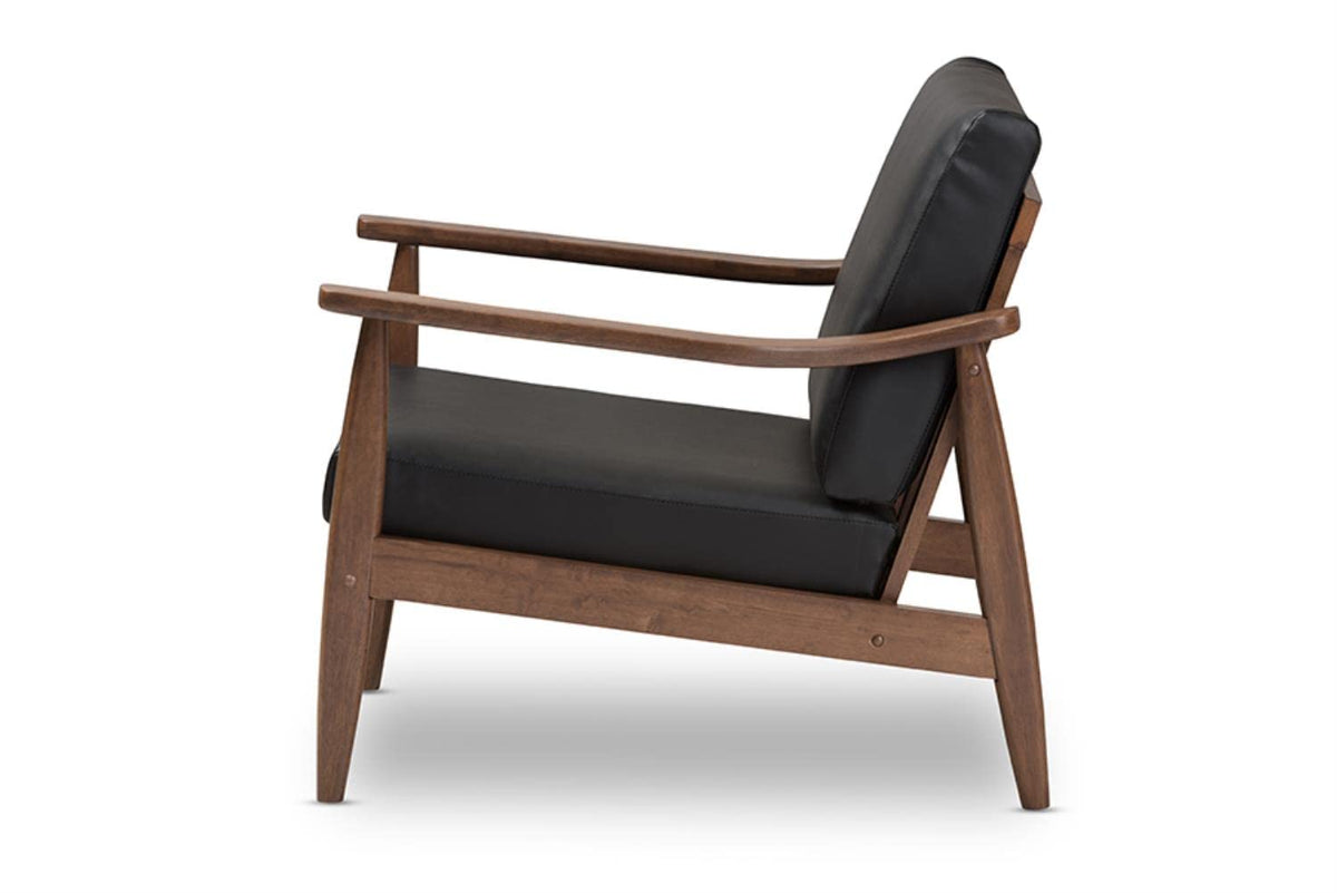 Baxton Studio Venza Mid-Century Modern Walnut Wood Black Faux Leather Lounge Chair/Mid-Century/Black/Walnut Brown/Faux Leather/Rubber Wood