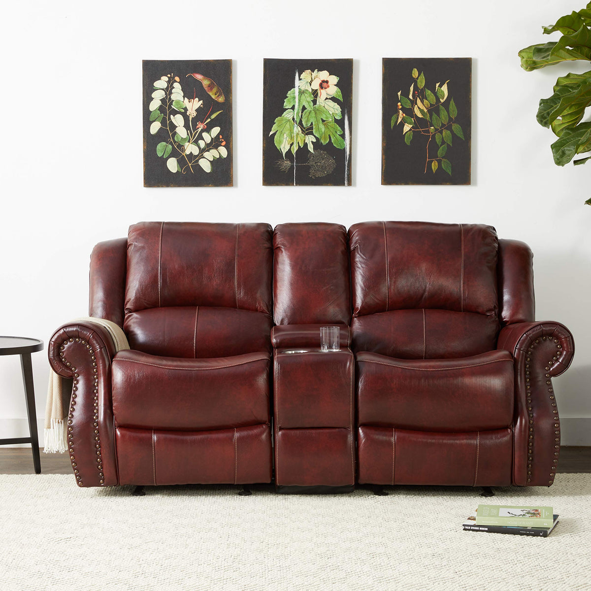 Cambridge Telluride 3 Piece Indoor Furniture Set With Deep Seating Double Sofa, Console Loveseat, And Rocker Recliner For Living, Family Room, Or Man Cave, 100% Oxblood Leather