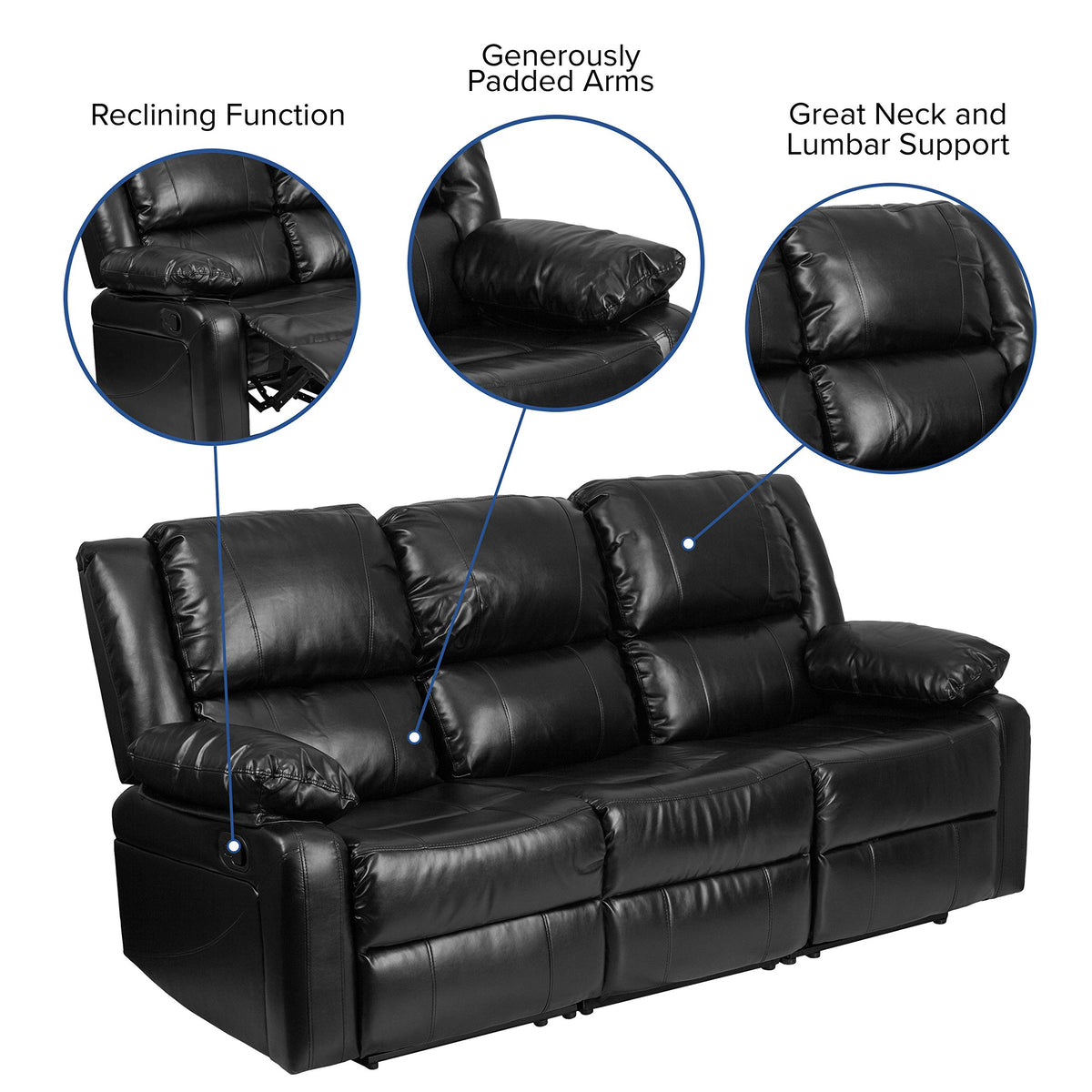 Flash Furniture Harmony Series Black Leathersoft Sofa With Two Built-In Recliners