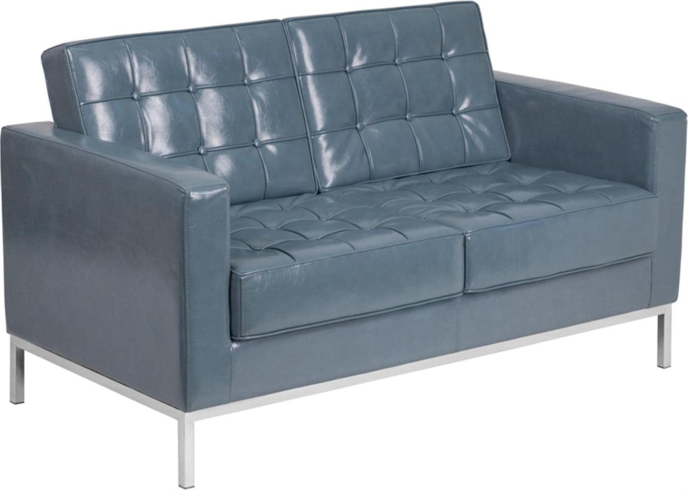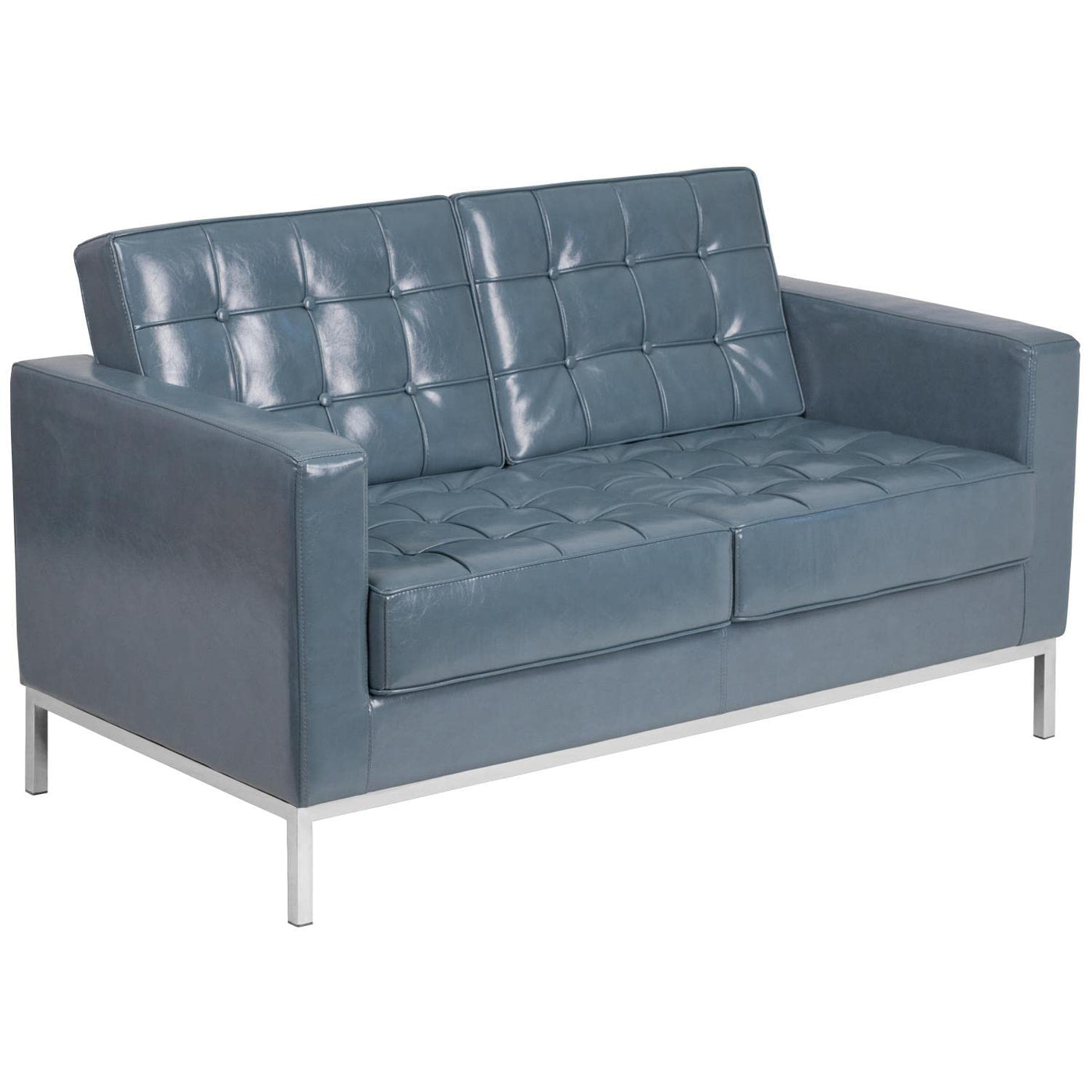 Flash Furniture Hercules Lacey Series Contemporary Gray Leathersoft Loveseat With Stainless Steel Frame