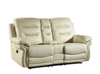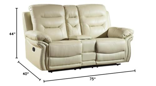 Beautify your home with some contemporary charm and first rate practicality with this sophisticated and well-made recliner console loveseat. This console loveseat is a high quality piece and has a comfortable beige microfiber upholstery and a steel base. It will definitely captivate anyone who sees it. Furthermore, this console loveseat features a Cenro recliner mechanism with a manual crank, which will ensure even more relaxation. It truly mixes splendid rest with sturdiness perfectly. To ensure this, it has a foam density of 2.4 for the seat and the arm, and the foot rest features a foam density of 2.0. Each seat also includes a pocket coil with foam for added ease. To complete this gorgeous look, it shows off a stunning style spot-on for the modern home. As for measurements, they're 44' for height, 75' for width, and 40' for depth, and it weighs 172 pounds. When you need to unwind and loosen up after a long day, this console loveseat is the best you can find. It will fit in excellently with any interior, and would be a marvelous decoration for your home.