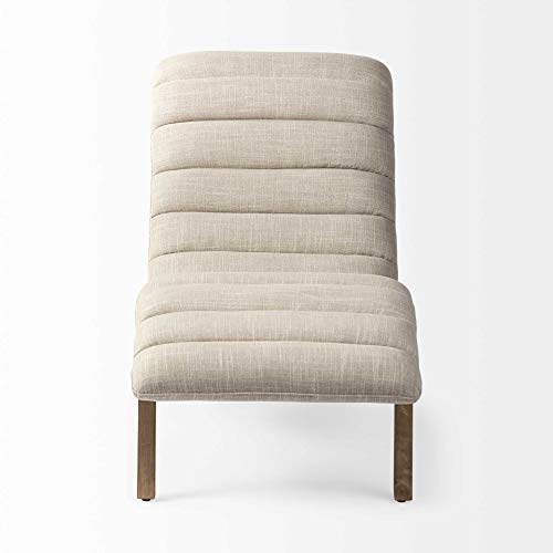 HomeRoots 54" Cream and Wood Brown Linen Tufted Lounge Chair