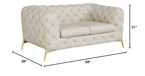 HomeRoots 69" Beige All Over Tufted Italian and Gold Leather Love Seat