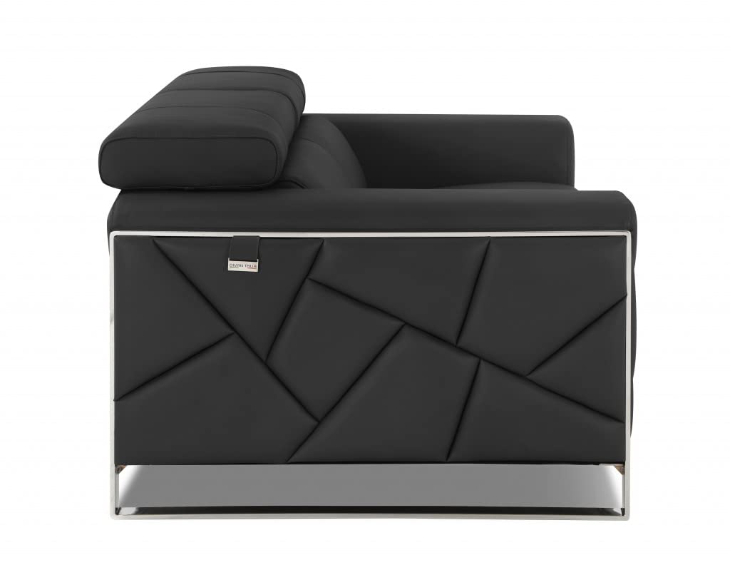 Fabulously soft, high-quality leather upper construction gives this 89-inch Dark Gray and Chrome Genuine Leather Standard Sofa an edge over the competition. The high quality leather used makes your lounging luxuriously comfortable and adds an elegant appeal to your space. The fabric suspension construction gives this piece strong support and makes it comfortable to sit on even for long periods of time. The square arm offers a comfortable place to rest and give this piece some interest and shape. A great showpiece for your room, this sofa is a must-have. 35"H x 89"W x 43"D