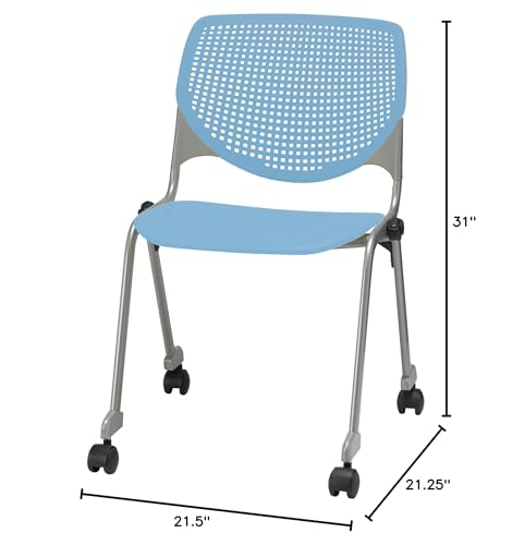 Kfi Seating Poly Stack Chair With Casters And Perforated Sky Blue