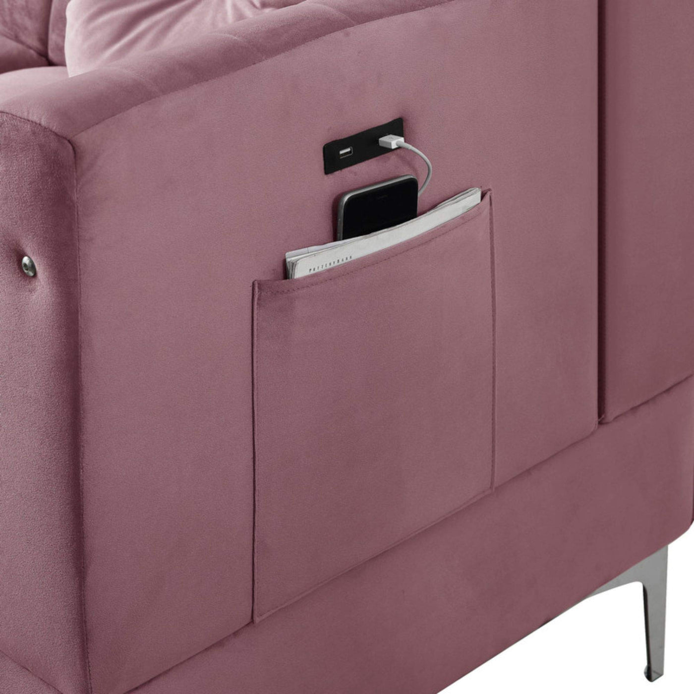 Lilola Home Chloe Pink Velvet Sectional Sofa Chaise with USB Charging Port