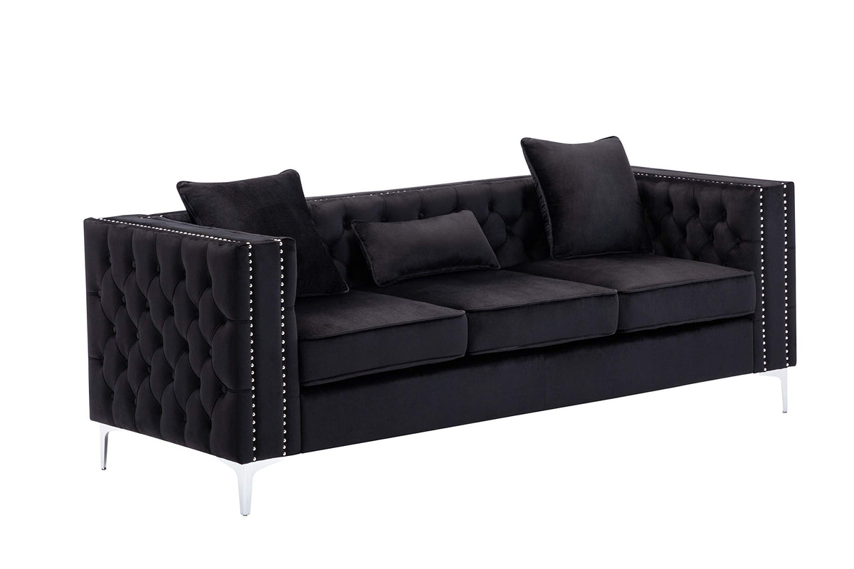 Glam up your living room with the modern sofa! Crafted from fine wood and quality fabrics, this sofa features an abundance of button tufting. The double nail-head trim adds a touch of elegance while the low back adds better lumbar support. Entertain your guests and family members in comfort and style.