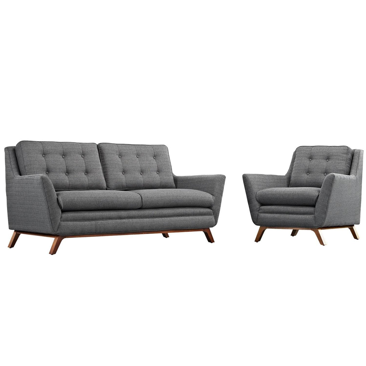 Modway Beguile Mid-Century Modern Loveseat Upholstered Fabric With Loveseat And Armchair In Gray