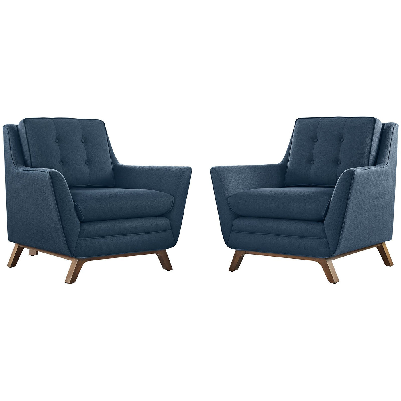 Modway Beguile Mid-Century Two Modern Armchair Set Upholstered Fabric In Azure