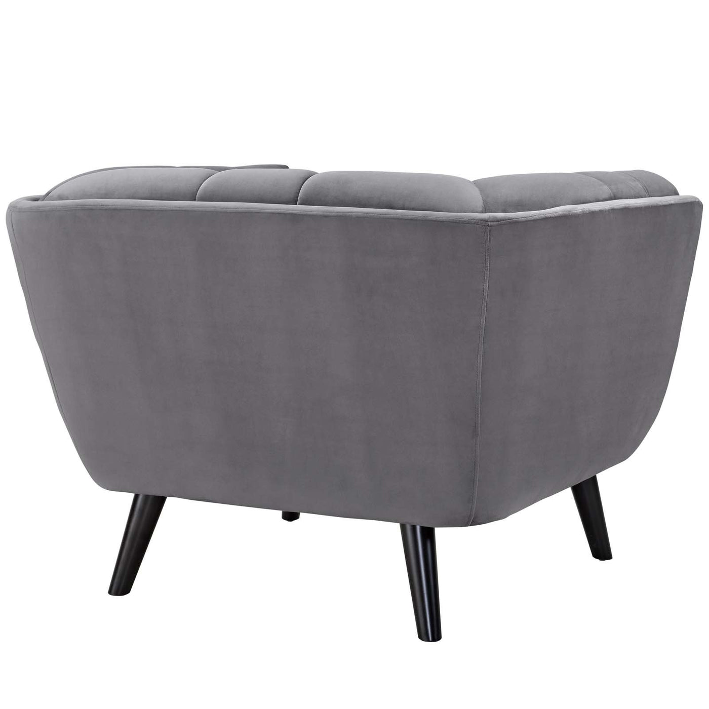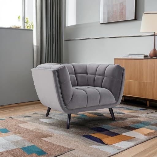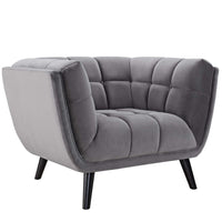 Generously Update Your Decor With Bestow. Uniquely Designed With A Striking Broad Profile, Bestow Comes Finely Upholstered In Soft Velvet Polyester Fabric With Dense Foam Padding And Elegant Button Tufting. Sturdily Positioned On Splayed And Tapered Black Finish Wood Legs With Non-Marking Foot Caps, Bestow Boasts A Bountiful Living Room Seating Design Brimming With Possibilities. With Ample Seat Depth And Overscaled Frame, Invite All Your Guests To Sit Comfortably In This 12" High Back And Arm Rest Collection Perfect For Mid-Century, Modern Farmhouse Or Contemporary Decors.