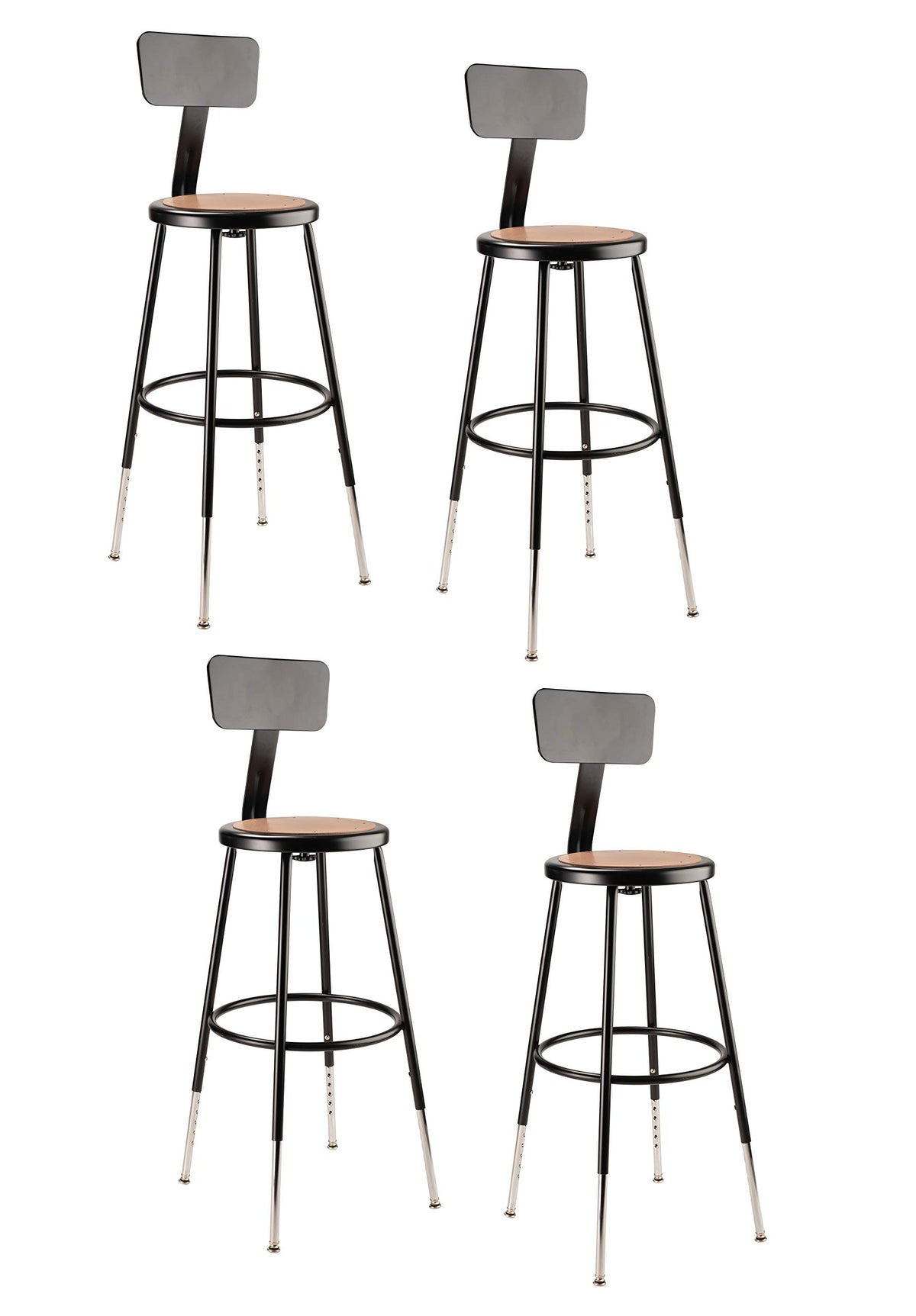 National Public Seating 6224Hb-10-Cn 25" X 33" Height Adjustable Heavy Duty Steel Stool With Backrest (4 Pack), Black