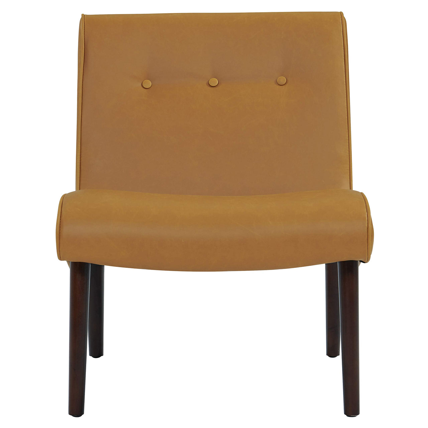 New Pacific Direct Alexis Tufted Mid Mod Bonded Leather Chair,Brown Legs,Vintage Caramel Brown,Fully Assembled