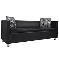 Dieses 3-Sitzer-Sofa, hergestellt aus qualitativ hochwertigem Kunstleder, bietet optimalen Sitzkomfort. Es verleiht Ihrer Einrichtung einen Hauch von Stil und Eleganz. Dieses 3-Sitzer-Sofa benötigt nur wenig Platz und seine modernen Linien passen sowohl zu klassischen als auch zu modernen Einrichtungen. Es verfügt über eine große Sitzfläche und dick gepolsterte Kissen für höchsten Sitzkomfort. Das Sofa ist mit qualitativ hochwertigem, strapazierfähigem Kunstleder bezogen, das zudem einfach zu reinigen ist. Es hat ein schlichtes Design und hochwertige Nähte. Das Sofa ist durchdacht konstruiert und hat stabile Füße, wodurch es eine lange Lebensdauer hat. Die Lieferung umfasst 1 x 3-Sitzer-Sofa und 2 x lose Kissen. Farbe: Schwarz Gesamtmaße: 170 x 62,5 x 63 cm (L x B x H)Sitzbreite: 151 cmSitztiefe: 50,5 cmSitzhöhe vom Boden: 41 cmInklusive zwei KissenKissengröße: 35 x 35 cmMax. Tragfähigkeit: 110 kgMaterial: Baumwolle: 4%, Polyester: 2%, PVC: 94%
