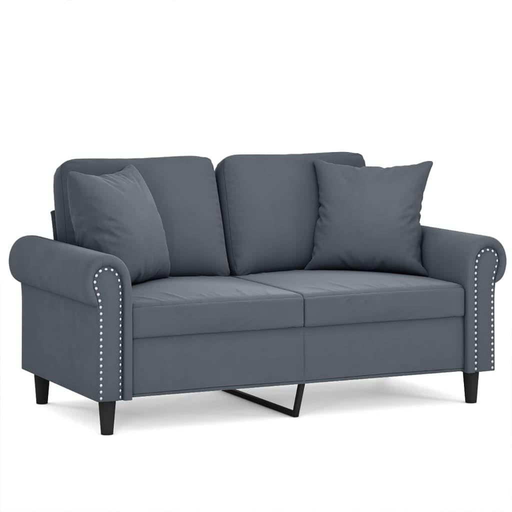 vidaXL Modern 2-Seater Sofa in Luxurious Dark Gray Velvet with Sturdy Metal Frame Including Throw Pillows for Living Room, Lounge Area