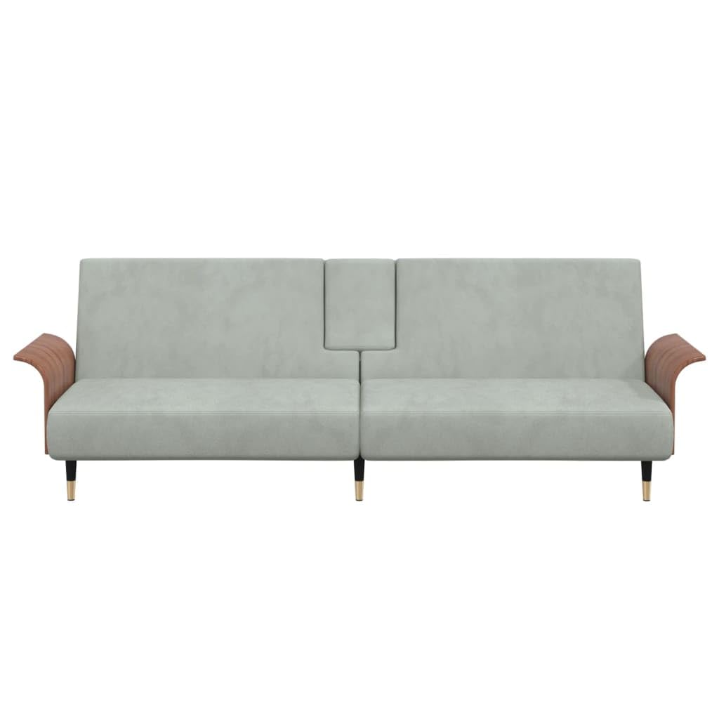 vidaXL Velvet Sofa Bed with Cup Holders, Light Gray, Plywood and Metal Frame, Foam Filled, Modern Design, Perfect for Seating and Overnight Guests