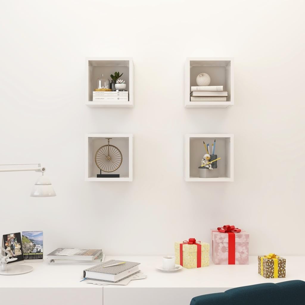 Wall Cube Shelves 4 pcs High Gloss White 22x15x22 cm