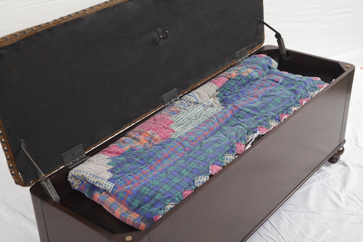 American Furniture Classics Tufted Seat Wooden Gun Concealment Bench with Cushioned, Medium Brown
