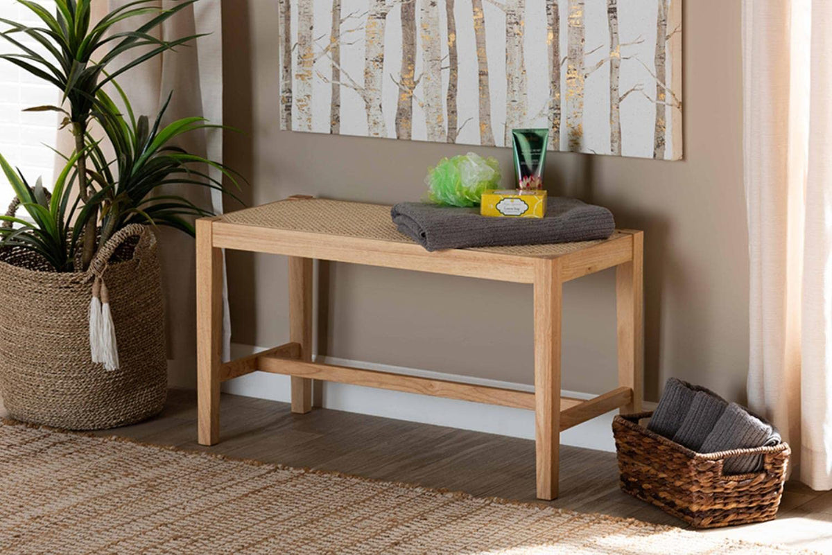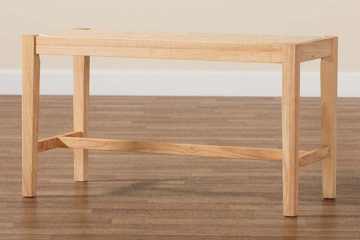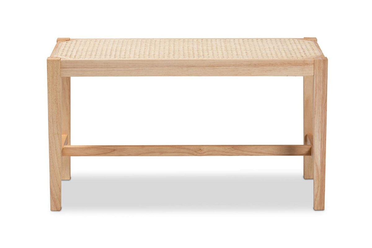 Baxton Studio Danyl Mid-Century Modern Oak Brown Finished Wood and Rattan Accent Bench