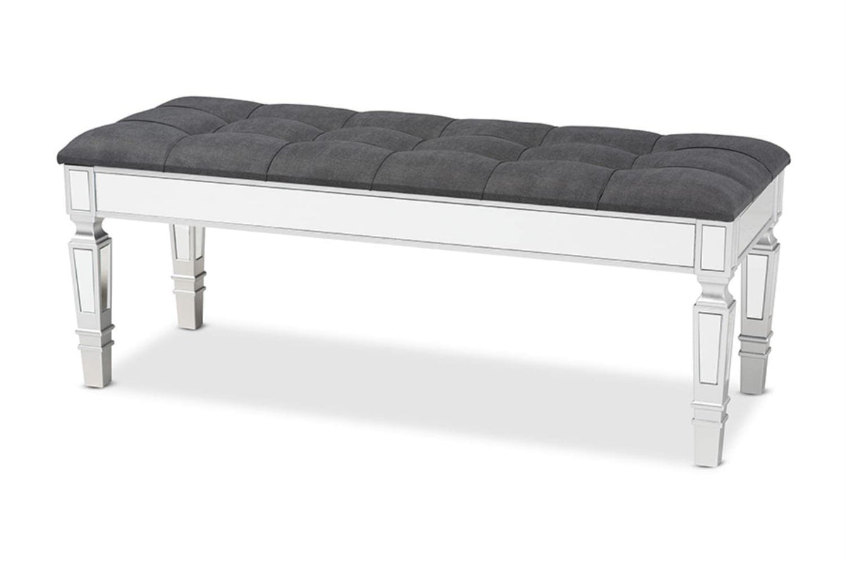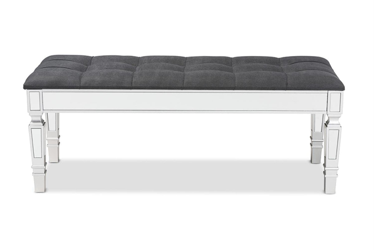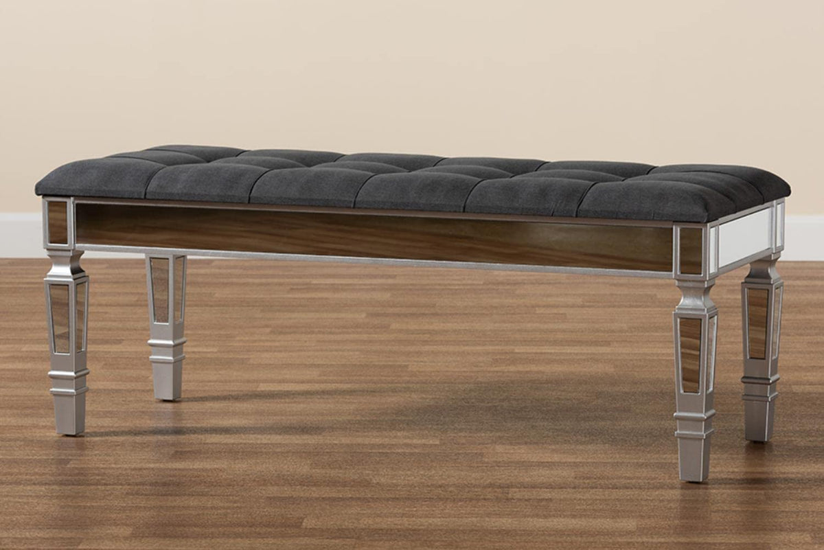 Baxton Studio Hedia Gray Fabric and Silver Wood Accent Bench