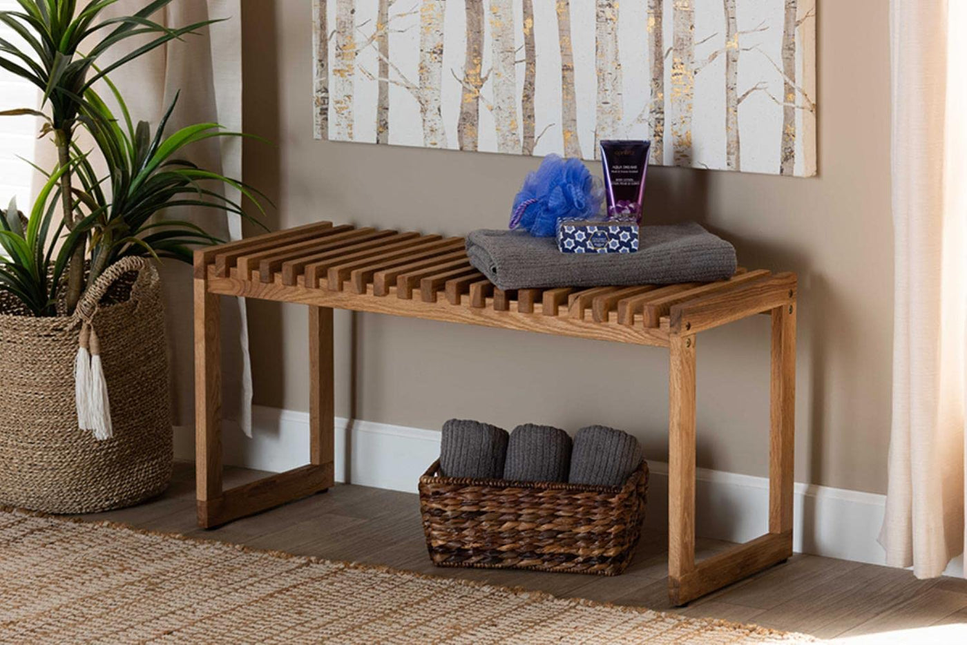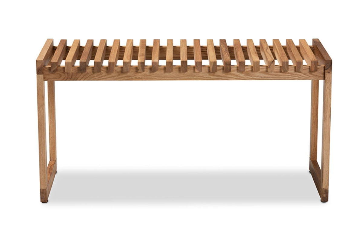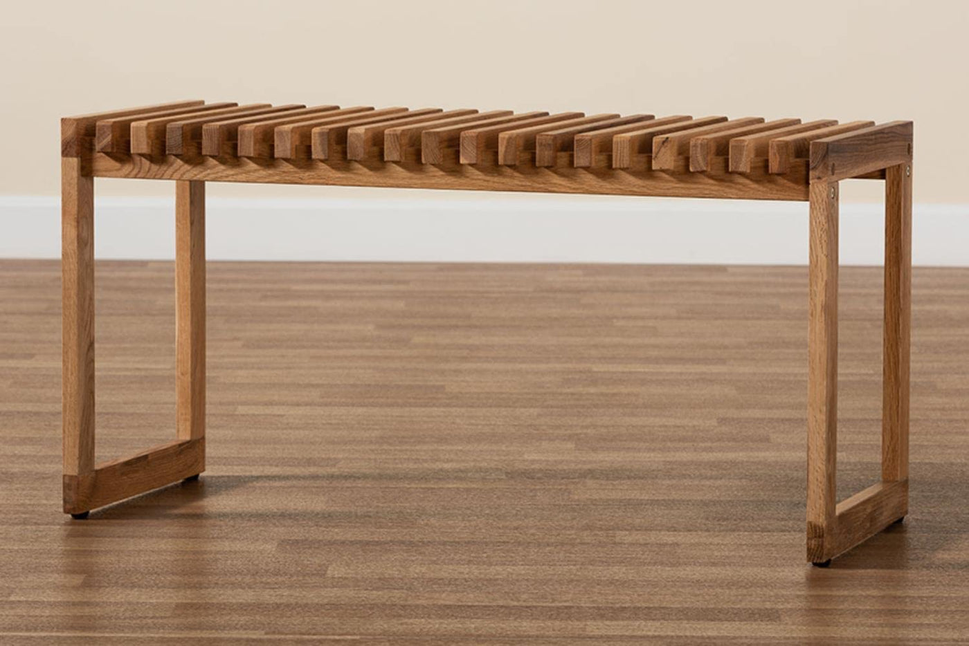 Baxton Studio Kaleb Rustic Mid-Century Modern Oak Brown Finished Wood Bench