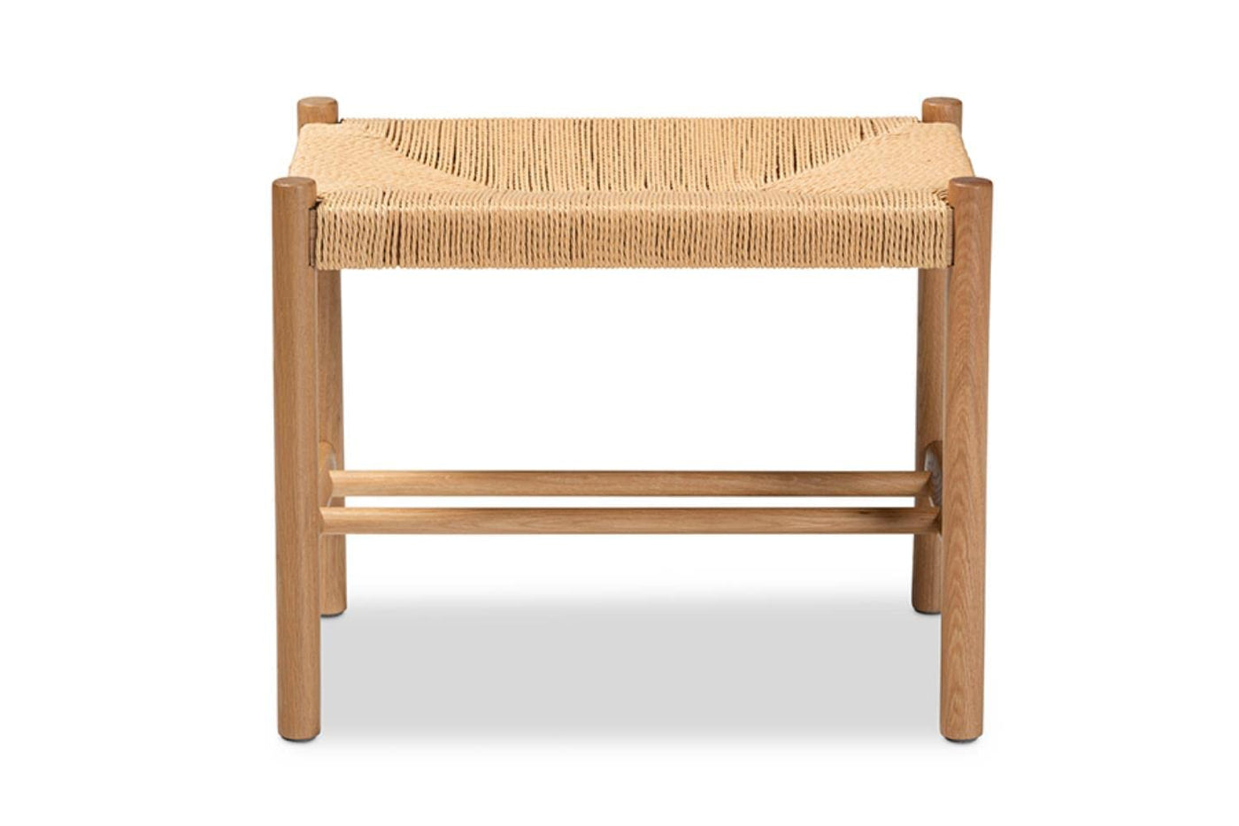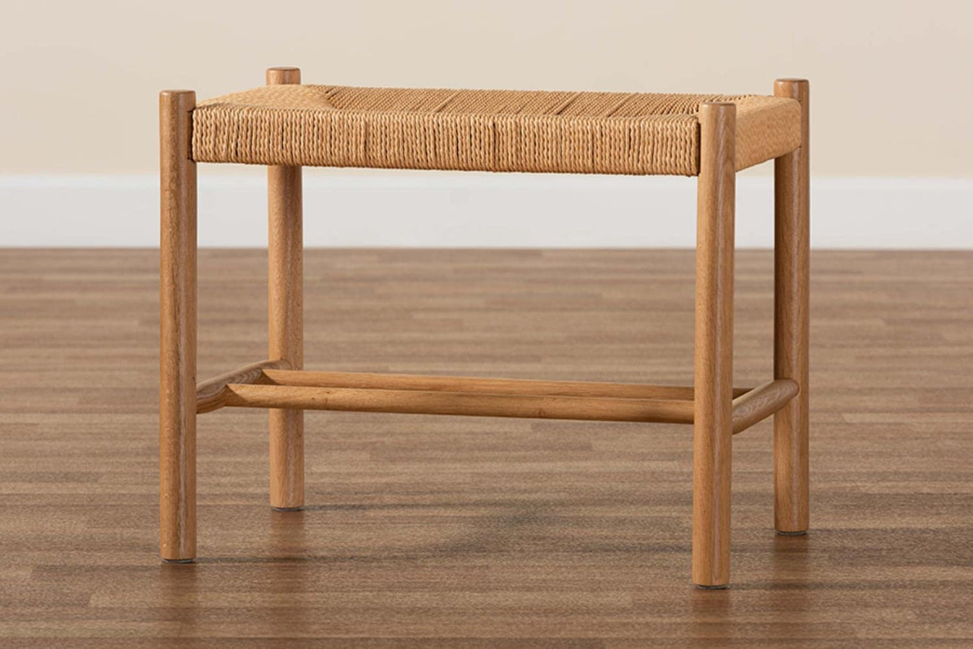 Baxton Studio Saura Mid-Century Modern Oak Brown Finished Wood and Hemp Accent Bench
