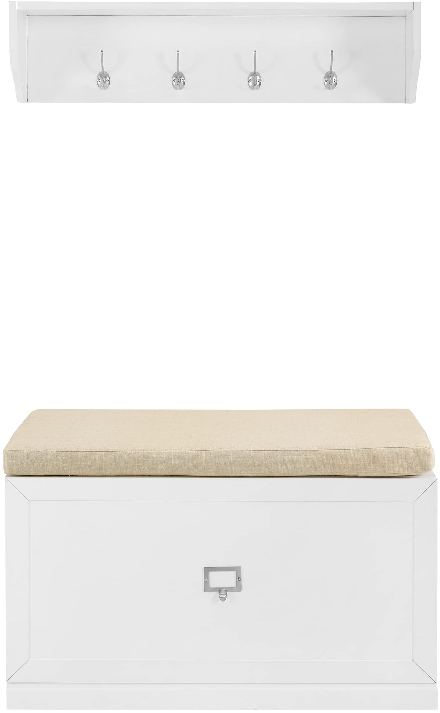 Crosley Furniture Harper 2-Piece Entryway Set With Shoe Rack Storage Bench And Wall Shelf With Coat Hooks, White