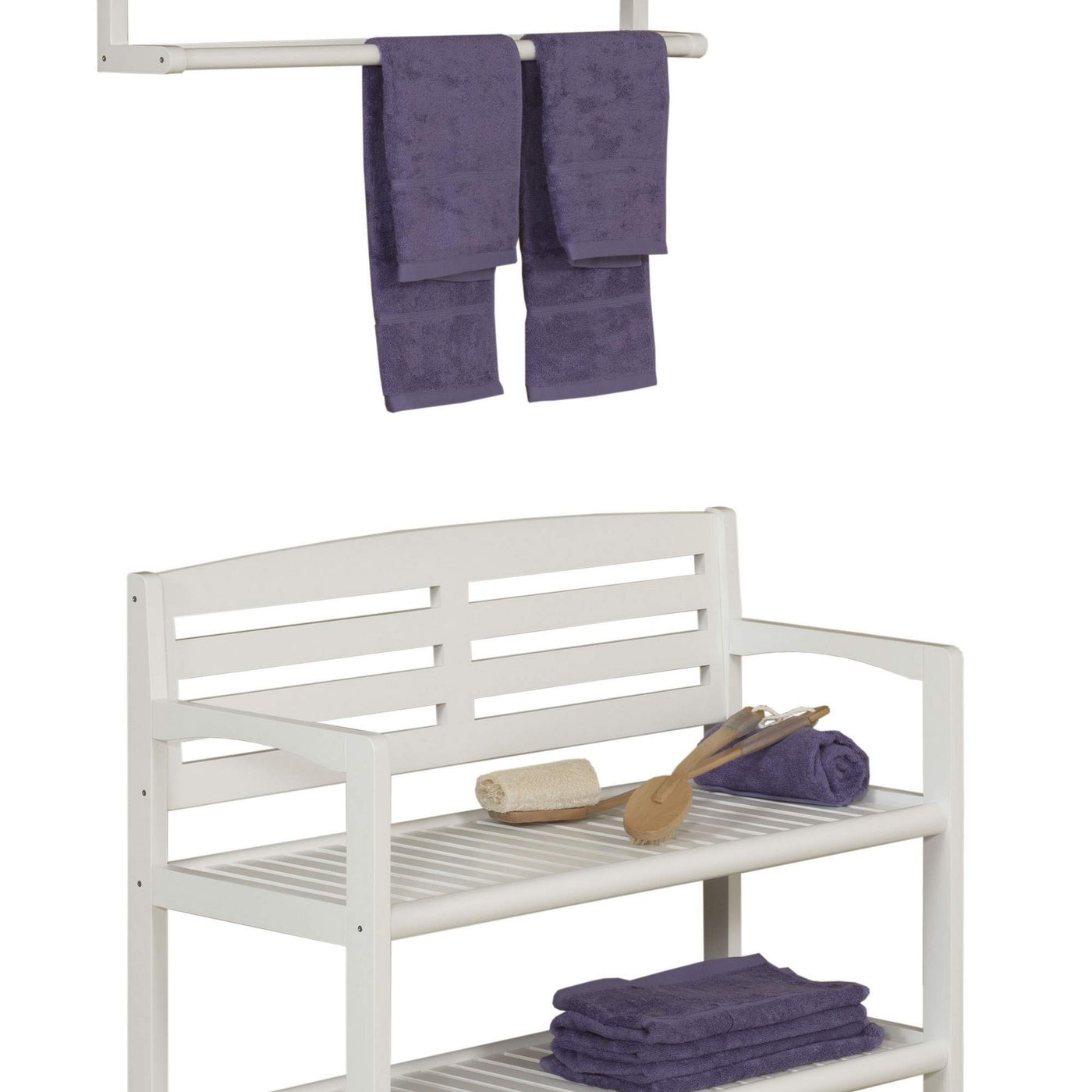 Combine style seating and storage with the distinctive Solid Wood Large Bench with Back This expertly crafted bench is built from Birch bringing modern cottage style and sophistication to your home Imagine this bench in your entryway offering a comfortable and timeless place to rest while youre getting settled Contoured edges provide added support and the open access storage shelf below is perfect for shoes boots and bags When paired with the Large Peg Rack with Shelf this bench creates a stylish entryway area for your home This piece is completed in highquality waterresistant and snagfree finishes in Simple instructions and all assembly hardware included Solid wooden furniture is durable sturdy and timeless Features. Rectangular Wood Bench with Back Shelf. Solid wooden furniture is durable sturdy and timeless. Snag free and water resistant finishes. Easy assembly with clear simple instructions. Wipe clean with damp cloth. Sturdy constructionSpecifications. Color Antique White. Shape Rectangle. Material Wood