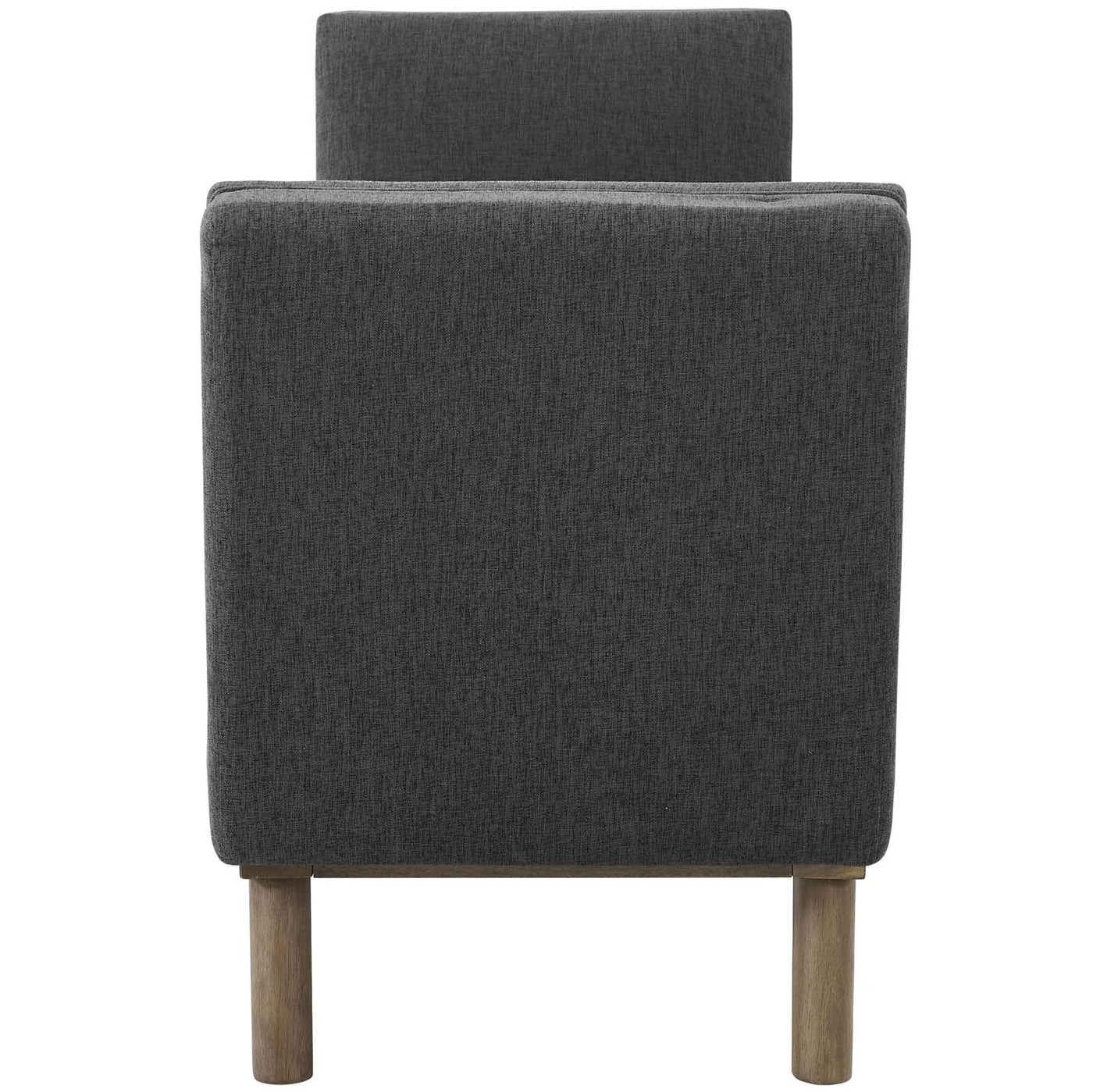 Sail Away With The Haven Accent Bench. Subtle Piping Blends With Biscuit Tufting Adorn Haven'S Generously Sized Seat With Artistry And Grace. Haven Features Dense Foam Padding Covered By Soft Polyester Fabric Upholstery For Premium Seating Comfort. Organically Flared Arms Rise From This Mid-Century Accent Bench To Enhance The Decor Of Your Living Room, Lounge Area, Bedroom, Entryway, Or Home Office. Haven'S Sturdy Rubberwood Frame Can Support Up To 800 Lbs And Rests Securely On Four Splayed Wooden Legs.