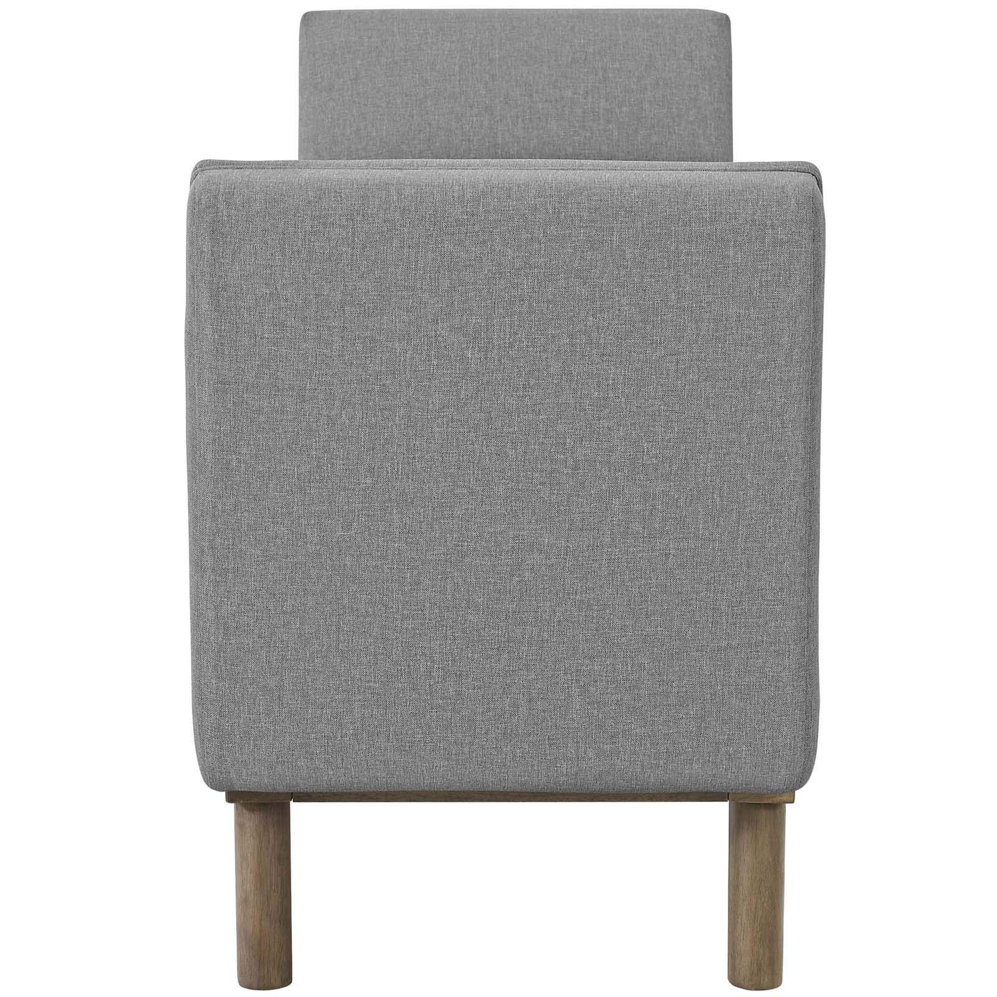 Sail Away With The Haven Accent Bench. Subtle Piping Blends With Biscuit Tufting Adorn Haven'S Generously Sized Seat With Artistry And Grace. Haven Features Dense Foam Padding Covered By Soft Polyester Fabric Upholstery For Premium Seating Comfort. Organically Flared Arms Rise From This Mid-Century Accent Bench To Enhance The Decor Of Your Living Room, Lounge Area, Bedroom, Entryway, Or Home Office. Haven'S Sturdy Rubberwood Frame Can Support Up To 800 Lbs And Rests Securely On Four Splayed Wooden Legs.