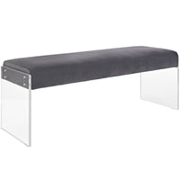 Modway Roam Modern Upholstered Bench With Acrylic Base In Gray Velvet