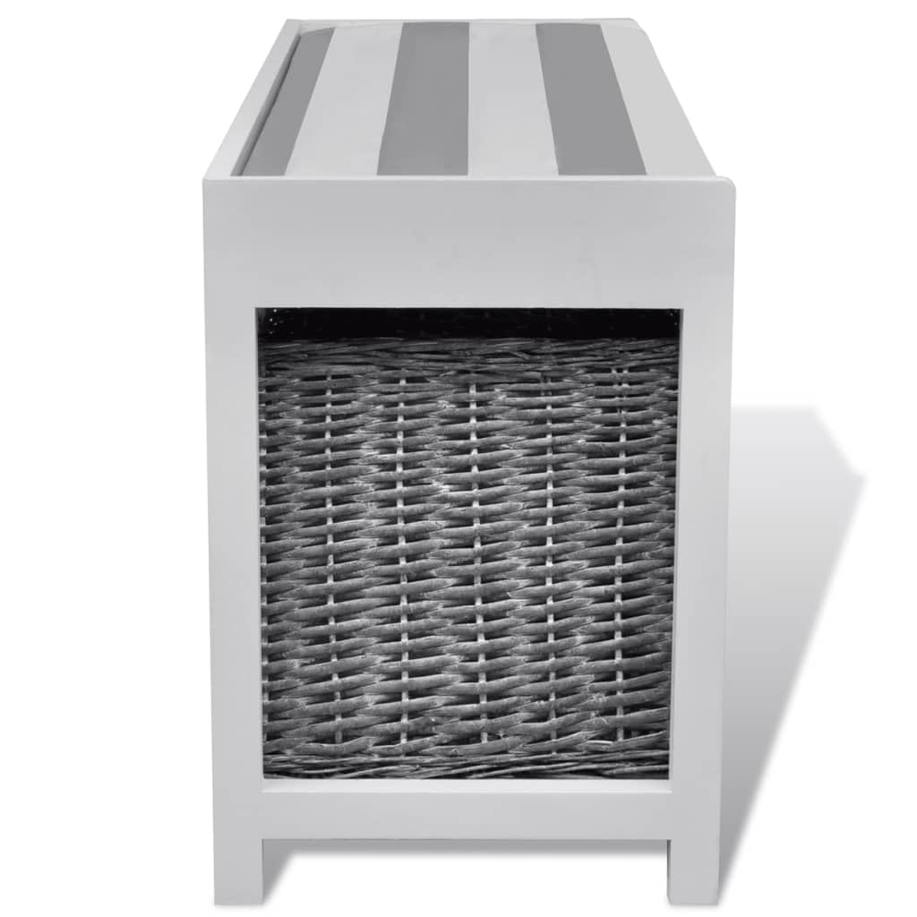 White Storage & Entryway Bench with Cushion Top 3 Basket