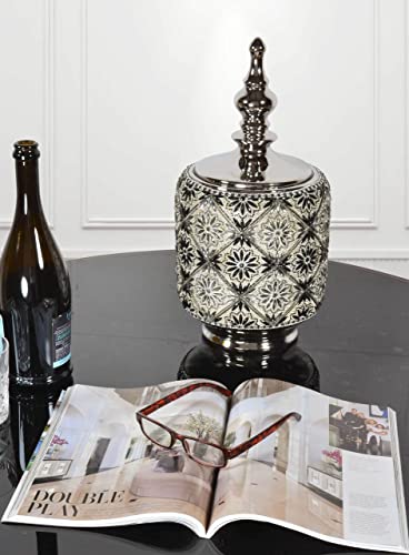 Afd Home Silver Black Crystal Flower Canister Decorative Box Urn