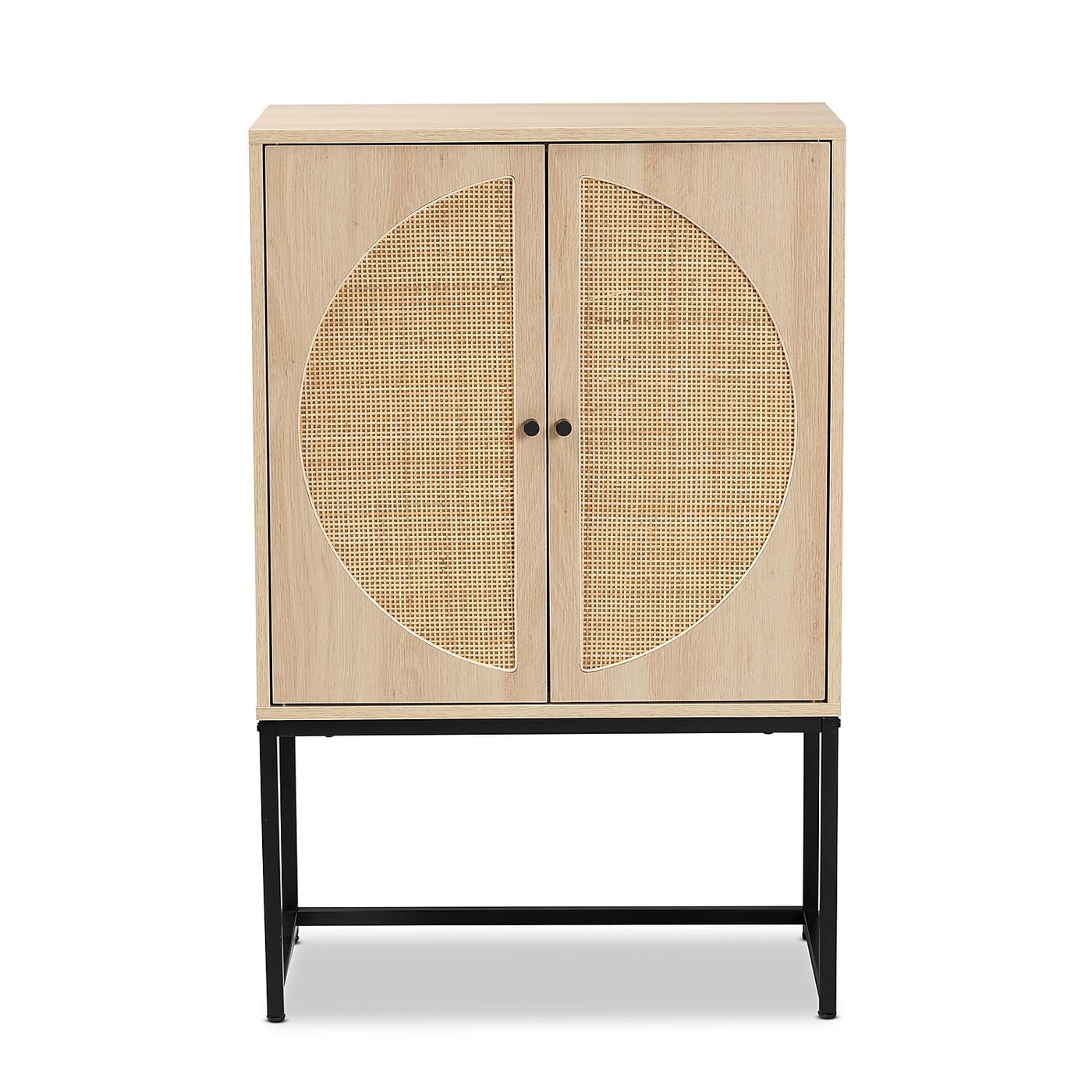 Combining retro design with modern geometry, the Ardon storage cabinet adds value to any space. Made in China, this striking piece combines natural rattan with a sturdy wood and metal frame for a tranquil, carefree display that exudes warmth. Two large shelves behind the doors offer ample space to organize and declutter busy areas of your home. Requiring assembly, the doors of the Ardon feature natural rattan accents for a charming, exotic touch. With a crisp and clean silhouette, the Ardon injects character to any space.