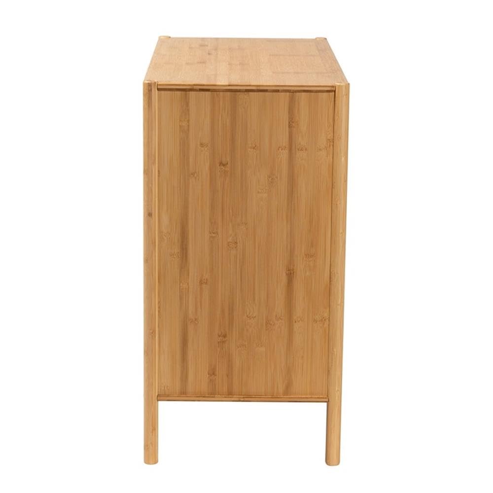 Express a style of casual elegance in your space with the carefree flair of the Naresh storage cabinet. Made in China, this efficient piece exudes mid-century charm with a bamboo frame embellished with see-through windows. Three wide drawers provide superb storage to organize your interior while the tabletop acts as a wonderful display area. The Naresh requires assembly and features minimalist door handles to draw attention to the natural grain of the wood. Clean lines and rounded legs produce a delightful silhouette, making the Naresh cabinet a chic accent in any layout.